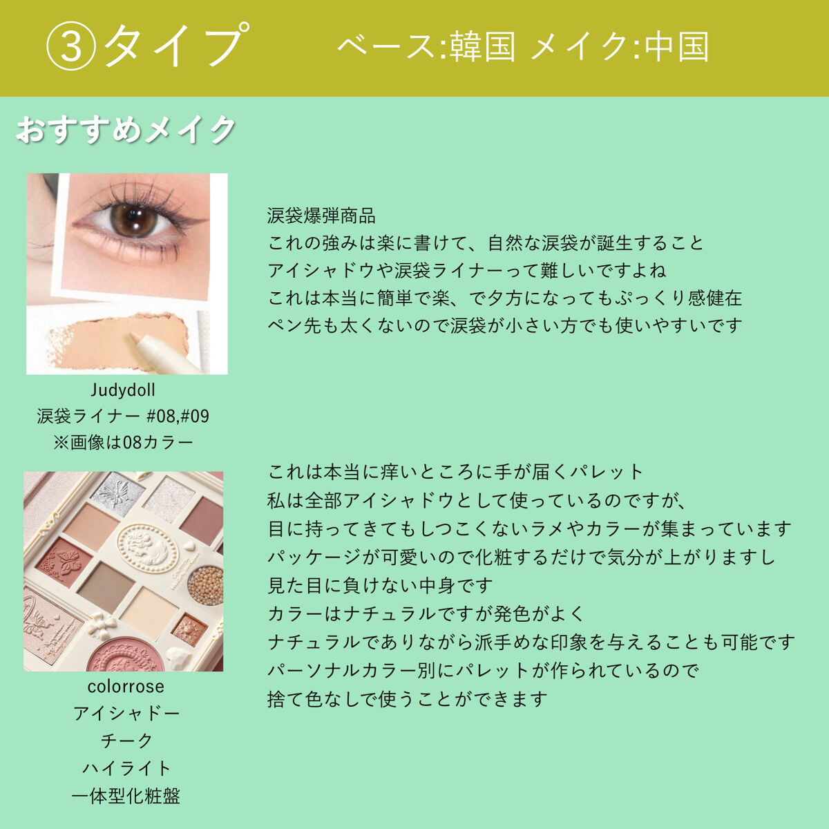 パーソナルカラーに合わないとパレットで買った時捨て色がでることありますよね。 使ってみた感想はブルベの方はこのパレット捨て色はなさそうなんですが、ブルベ夏の方が似合うパレットだなという印象。 ただ、ブルベ冬にハマったわ!このアイシャドウ! このアイシャドウを迷ってる方は1度店頭にあるテスターで色味確認してみてくださいね。