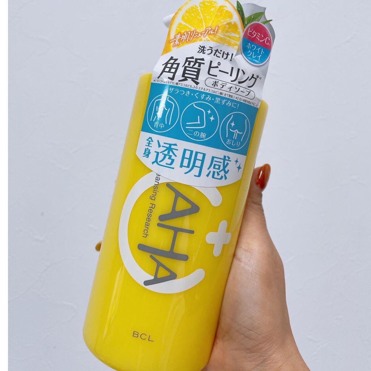 - 洗うだけ角質つるん!ザラつきのない透明感ボディに。ビタミンC※1 配合の新ボディソープ。 ▼AHA(リンゴ酸)※2 でザラつき・ブツブツ・黒ずみオフ。全身の古い角質をすっきり洗い上げて、肌触りなめらかなつるんと透明感のある素肌に洗い上げます。 ▼ビタミンC※1 増量※3 &ホワイトクレイ※4 配合。くすみをクリア、透明感肌に。 ▼シトラスエキス※5 配合。すっきりさっぱりした洗い心地。 ▼保湿成分配合。・ティーツリー葉油 ・カキ果実エキス ・チャ葉エキス ▼植物性洗浄成分使用。 ▼フレッシュなシトラスの香り。 ※1 テトラへキシルデカン酸あすこルビル、3‐0エチルあすこルビン酸(全て整肌) ※2 角質ケア成分 ※3 ボディピールソープとの比較 ※4 カオリン(汚れ吸着成分) ※5 レモン果実エキス、グレープフルーツ果実エキス、ユズ果実エキス(全て保湿)