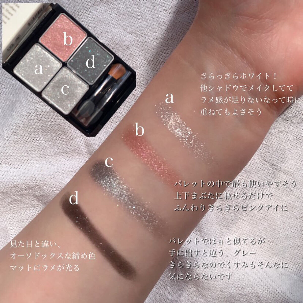 | しっとりめのパウダーで、全く粉っぽさが無く、ピタッと瞼に密着してくれる美しすぎる仕上がりが完成します😳 | 詳細を見る | |