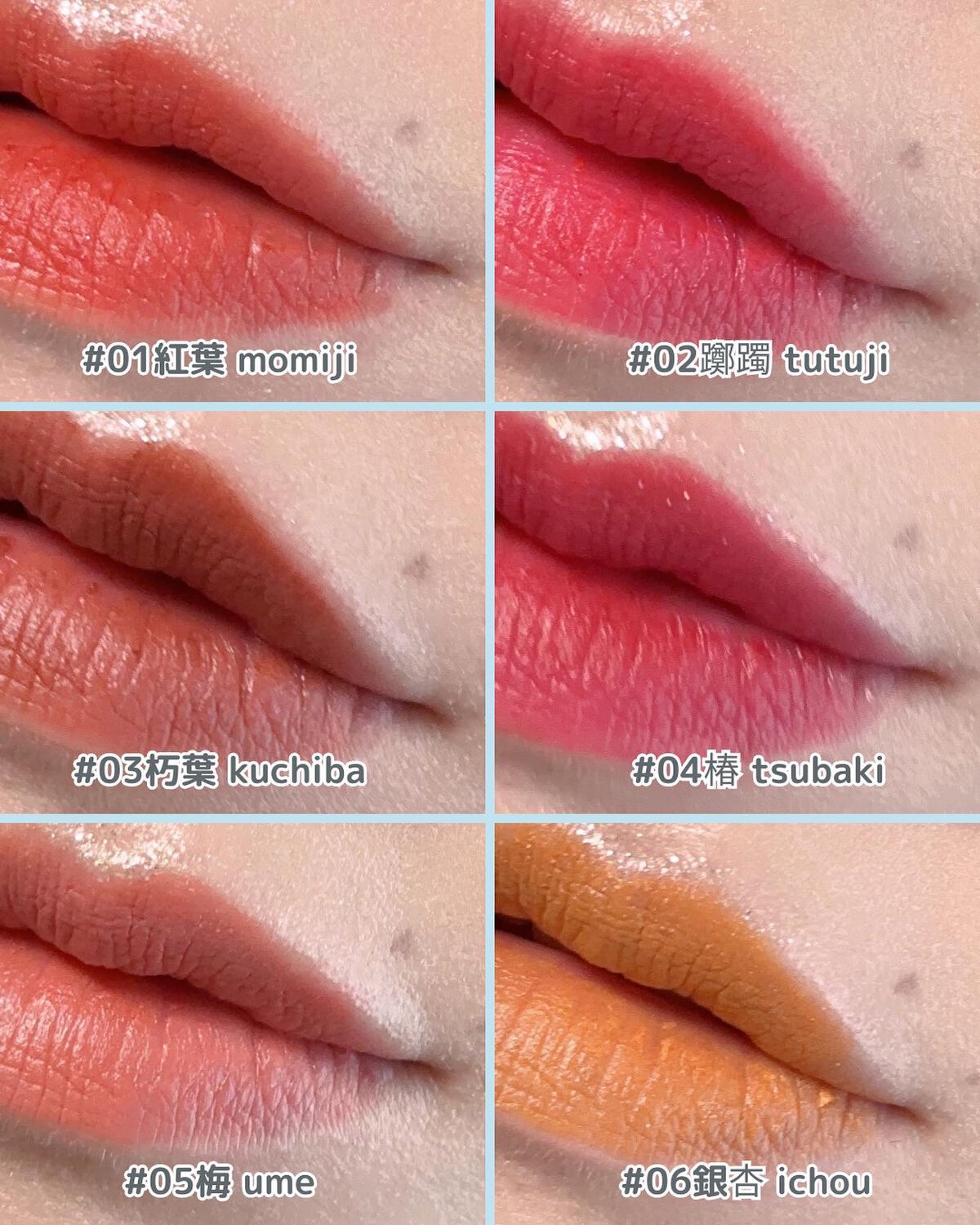 - #01 momoji スクワラン、ジメチコン、ビスジグリセリルポリアシルアジペート-2、ポリエチレン、オゾケライト、ナイロン-12、フェニルトリメチコン、リンゴ酸ジイソステアリル、(ビニルジメチコン/メチコンシルセスキオキサン)クロスポリマー、トリメリト酸トリトリデシル、マイクロクリスタリンワックス、ジメチコンクロスポリマー、パルミチン酸エチルヘキシル、ヒマワリ種子油、ベニバナ花エキス、クチナシ花エキス、キク花エキス、ウメ花エキス、エチルヘキシルグリセリン、酢酸トコフェロール、トリ(カプリル酸/カプリン酸)グリセリル、フェノキシエタノール、BHT(+/-)酸化鉄、黄5、赤104(1)、赤202、酸化チタン、赤201 #02 tutuji スクワラン、ジメチコン、ビスジグリセリルポリアシルアジペート-2、ポリエチレン、オゾケライト、ナイロン-12、フェニルトリメチコン、リンゴ酸ジイソステアリル、(ビニルジメチコン/メチコンシルセスキオキサン)クロスポリマー、トリメリト酸トリトリデシル、マイクロクリスタリンワックス、ジメチコンクロスポリマー、パルミチン酸エチルヘキシル、ヒマワリ種子油、ベニバナ花エキス、クチナシ花エキス、キク花エキス、ウメ花エキス、エチルヘキシルグリセリン、酢酸トコフェロール、トリ(カプリル酸/カプリン酸)グリセリル、フェノキシエタノール、BHT(+/-)酸化鉄、黄5、赤104(1)、赤202、酸化チタン、赤201 #03 kuchiba スクワラン、ジメチコン、ビスジグリセリルポリアシルアジペート-2、ポリエチレン、オゾケライト、ナイロン-12、フェニルトリメチコン、リンゴ酸ジイソステアリル、(ビニルジメチコン/メチコンシルセスキオキサン)クロスポリマー、トリメリト酸トリトリデシル、マイクロクリスタリンワックス、ジメチコンクロスポリマー、パルミチン酸エチルヘキシル、ヒマワリ種子油、ベニバナ花エキス、クチナシ花エキス、キク花エキス、ウメ花エキス、エチルヘキシルグリセリン、酢酸トコフェロール、トリ(カプリル酸/カプリン酸)グリセリル、フェノキシエタノール、BHT(+/-)酸化鉄、黄5、赤104(1)、赤202、酸化チタン、赤201 #04 tsubaki スクワラン、ジメチコン、ビスジグリセリルポリアシルアジペート-2、ポリエチレン、オゾケライト、ナイロン-12、フェニルトリメチコン、リンゴ酸ジイソステアリル、(ビニルジメチコン/メチコンシルセスキオキサン)クロスポリマー、トリメリト酸トリトリデシル、マイクロクリスタリンワックス、ジメチコンクロスポリマー、パルミチン酸エチルヘキシル、ヒマワリ種子油、ベニバナ花エキス、クチナシ花エキス、キク花エキス、ウメ花エキス、エチルヘキシルグリセリン、酢酸トコフェロール、トリ(カプリル酸/カプリン酸)グリセリル、フェノキシエタノール、BHT(+/-)酸化鉄、黄5、赤104(1)、赤202、酸化チタン、赤201 #05 ume スクワラン、ジメチコン、ビスジグリセリルポリアシルアジペート-2、ポリエチレン、オゾケライト、ナイロン-12、フェニルトリメチコン、リンゴ酸ジイソステアリル、(ビニルジメチコン/メチコンシルセスキオキサン)クロスポリマー、トリメリト酸トリトリデシル、マイクロクリスタリンワックス、ジメチコンクロスポリマー、パルミチン酸エチルヘキシル、ヒマワリ種子油、ベニバナ花エキス、クチナシ花エキス、キク花エキス、ウメ花エキス、エチルヘキシルグリセリン、酢酸トコフェロール、トリ(カプリル酸/カプリン酸)グリセリル、フェノキシエタノール、BHT(+/-)酸化鉄、黄5、赤104(1)、赤202、酸化チタン、赤201 #06 ichou スクワラン、ジメチコン、ビスジグリセリルポリアシルアジペート-2、ポリエチレン、オゾケライト、ナイロン-12、フェニルトリメチコン、リンゴ酸ジイソステアリル、(ビニルジメチコン/メチコンシルセスキオキサン)クロスポリマー、トリメリト酸トリトリデシル、マイクロクリスタリンワックス、ジメチコンクロスポリマー、パルミチン酸エチルヘキシル、ヒマワリ種子油、ベニバナ花エキス、クチナシ花エキス、キク花エキス、ウメ花エキス、エチルヘキシルグリセリン、酢酸トコフェロール、トリ(カプリル酸/カプリン酸)グリセリル、フェノキシエタノール、BHT(+/-)酸化鉄、黄5、赤104(1)、赤202、酸化チタン、赤201 #07 sakura 水添ポリイソブテン、リンゴ酸ジイソステアリル、ポリイソブテン、ポリエチレン、シア脂、ミツロウ、ジ安息香酸PG、トリ(カプリル酸/カプリン酸)グリセリル、テトライソステアリン酸ペンタエリスリチル、ヘキサ(ヒドロキシステアリン酸/ステアリン酸/ロジン酸)ジペンタエリスリチル、ビスジグリセリルポリアシルアジペート-2、香料、t-ブチルメトキシジベンゾイルメタン、パルミチン酸エチルヘキシル、メトキシケイヒ酸エチルヘキシル、サリチル酸エチルヘキシル、フェノキシエタノール、黄5、赤104(1)、赤218 #08 kuchinashi 水添ポリイソブテン、リンゴ酸ジイソステアリル、ポリイソブテン、ポリエチレン、シア脂、ミツロウ、エタノール、オクチルドデカノー
