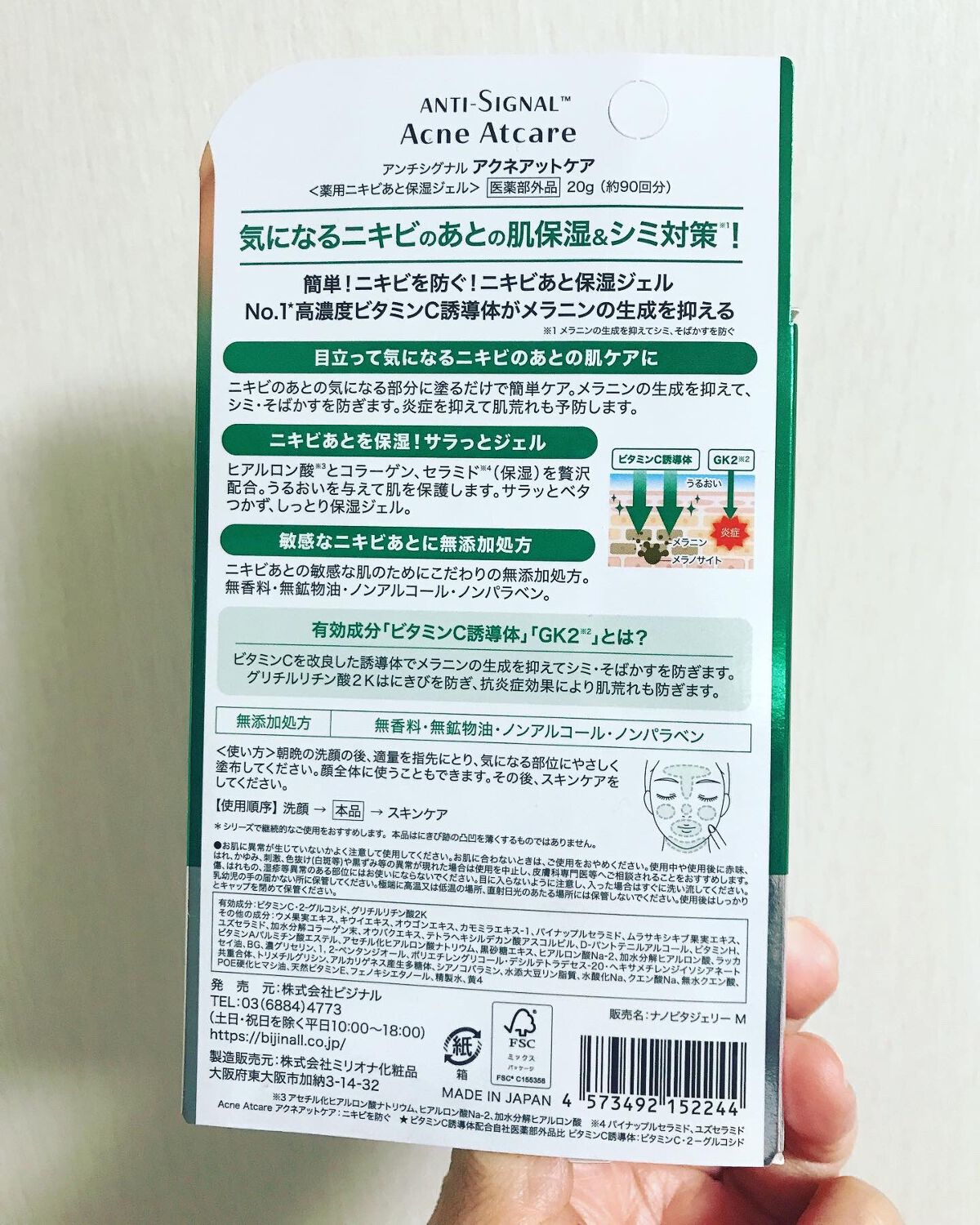 - 【医薬部外品】薬用ニキビあと保湿ジェル。有効成分「ビタミンC誘導体」がメラニンの生成を抑えて、シミ・そばかすを防ぎます。にきび、肌荒れを防ぐ抗炎症成分「グリチルリチン酸ジカリウム」配合。
