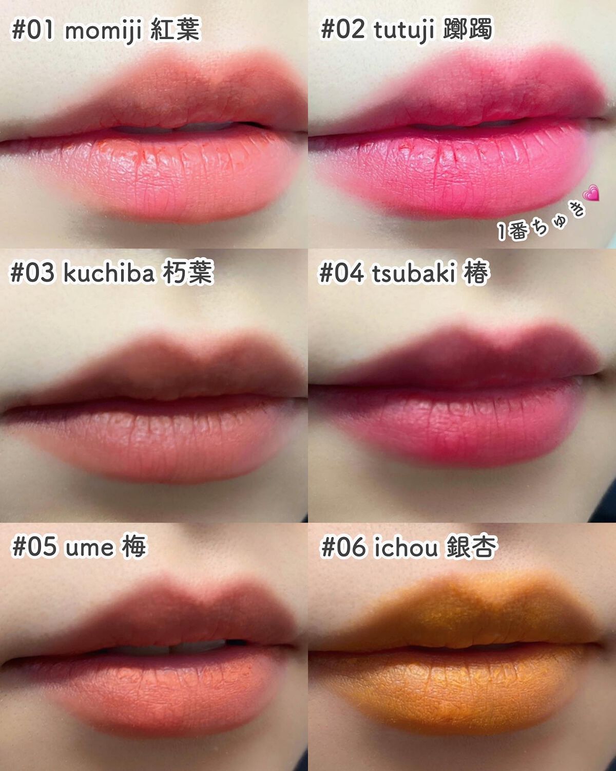 - #01 momoji スクワラン、ジメチコン、ビスジグリセリルポリアシルアジペート-2、ポリエチレン、オゾケライト、ナイロン-12、フェニルトリメチコン、リンゴ酸ジイソステアリル、(ビニルジメチコン/メチコンシルセスキオキサン)クロスポリマー、トリメリト酸トリトリデシル、マイクロクリスタリンワックス、ジメチコンクロスポリマー、パルミチン酸エチルヘキシル、ヒマワリ種子油、ベニバナ花エキス、クチナシ花エキス、キク花エキス、ウメ花エキス、エチルヘキシルグリセリン、酢酸トコフェロール、トリ(カプリル酸/カプリン酸)グリセリル、フェノキシエタノール、BHT(+/-)酸化鉄、黄5、赤104(1)、赤202、酸化チタン、赤201 #02 tutuji スクワラン、ジメチコン、ビスジグリセリルポリアシルアジペート-2、ポリエチレン、オゾケライト、ナイロン-12、フェニルトリメチコン、リンゴ酸ジイソステアリル、(ビニルジメチコン/メチコンシルセスキオキサン)クロスポリマー、トリメリト酸トリトリデシル、マイクロクリスタリンワックス、ジメチコンクロスポリマー、パルミチン酸エチルヘキシル、ヒマワリ種子油、ベニバナ花エキス、クチナシ花エキス、キク花エキス、ウメ花エキス、エチルヘキシルグリセリン、酢酸トコフェロール、トリ(カプリル酸/カプリン酸)グリセリル、フェノキシエタノール、BHT(+/-)酸化鉄、黄5、赤104(1)、赤202、酸化チタン、赤201 #03 kuchiba スクワラン、ジメチコン、ビスジグリセリルポリアシルアジペート-2、ポリエチレン、オゾケライト、ナイロン-12、フェニルトリメチコン、リンゴ酸ジイソステアリル、(ビニルジメチコン/メチコンシルセスキオキサン)クロスポリマー、トリメリト酸トリトリデシル、マイクロクリスタリンワックス、ジメチコンクロスポリマー、パルミチン酸エチルヘキシル、ヒマワリ種子油、ベニバナ花エキス、クチナシ花エキス、キク花エキス、ウメ花エキス、エチルヘキシルグリセリン、酢酸トコフェロール、トリ(カプリル酸/カプリン酸)グリセリル、フェノキシエタノール、BHT(+/-)酸化鉄、黄5、赤104(1)、赤202、酸化チタン、赤201 #04 tsubaki スクワラン、ジメチコン、ビスジグリセリルポリアシルアジペート-2、ポリエチレン、オゾケライト、ナイロン-12、フェニルトリメチコン、リンゴ酸ジイソステアリル、(ビニルジメチコン/メチコンシルセスキオキサン)クロスポリマー、トリメリト酸トリトリデシル、マイクロクリスタリンワックス、ジメチコンクロスポリマー、パルミチン酸エチルヘキシル、ヒマワリ種子油、ベニバナ花エキス、クチナシ花エキス、キク花エキス、ウメ花エキス、エチルヘキシルグリセリン、酢酸トコフェロール、トリ(カプリル酸/カプリン酸)グリセリル、フェノキシエタノール、BHT(+/-)酸化鉄、黄5、赤104(1)、赤202、酸化チタン、赤201 #05 ume スクワラン、ジメチコン、ビスジグリセリルポリアシルアジペート-2、ポリエチレン、オゾケライト、ナイロン-12、フェニルトリメチコン、リンゴ酸ジイソステアリル、(ビニルジメチコン/メチコンシルセスキオキサン)クロスポリマー、トリメリト酸トリトリデシル、マイクロクリスタリンワックス、ジメチコンクロスポリマー、パルミチン酸エチルヘキシル、ヒマワリ種子油、ベニバナ花エキス、クチナシ花エキス、キク花エキス、ウメ花エキス、エチルヘキシルグリセリン、酢酸トコフェロール、トリ(カプリル酸/カプリン酸)グリセリル、フェノキシエタノール、BHT(+/-)酸化鉄、黄5、赤104(1)、赤202、酸化チタン、赤201 #06 ichou スクワラン、ジメチコン、ビスジグリセリルポリアシルアジペート-2、ポリエチレン、オゾケライト、ナイロン-12、フェニルトリメチコン、リンゴ酸ジイソステアリル、(ビニルジメチコン/メチコンシルセスキオキサン)クロスポリマー、トリメリト酸トリトリデシル、マイクロクリスタリンワックス、ジメチコンクロスポリマー、パルミチン酸エチルヘキシル、ヒマワリ種子油、ベニバナ花エキス、クチナシ花エキス、キク花エキス、ウメ花エキス、エチルヘキシルグリセリン、酢酸トコフェロール、トリ(カプリル酸/カプリン酸)グリセリル、フェノキシエタノール、BHT(+/-)酸化鉄、黄5、赤104(1)、赤202、酸化チタン、赤201 #07 sakura 水添ポリイソブテン、リンゴ酸ジイソステアリル、ポリイソブテン、ポリエチレン、シア脂、ミツロウ、ジ安息香酸PG、トリ(カプリル酸/カプリン酸)グリセリル、テトライソステアリン酸ペンタエリスリチル、ヘキサ(ヒドロキシステアリン酸/ステアリン酸/ロジン酸)ジペンタエリスリチル、ビスジグリセリルポリアシルアジペート-2、香料、t-ブチルメトキシジベンゾイルメタン、パルミチン酸エチルヘキシル、メトキシケイヒ酸エチルヘキシル、サリチル酸エチルヘキシル、フェノキシエタノール、黄5、赤104(1)、赤218 #08 kuchinashi 水添ポリイソブテン、リンゴ酸ジイソステアリル、ポリイソブテン、ポリエチレン、シア脂、ミツロウ、エタノール、オクチルドデカノー