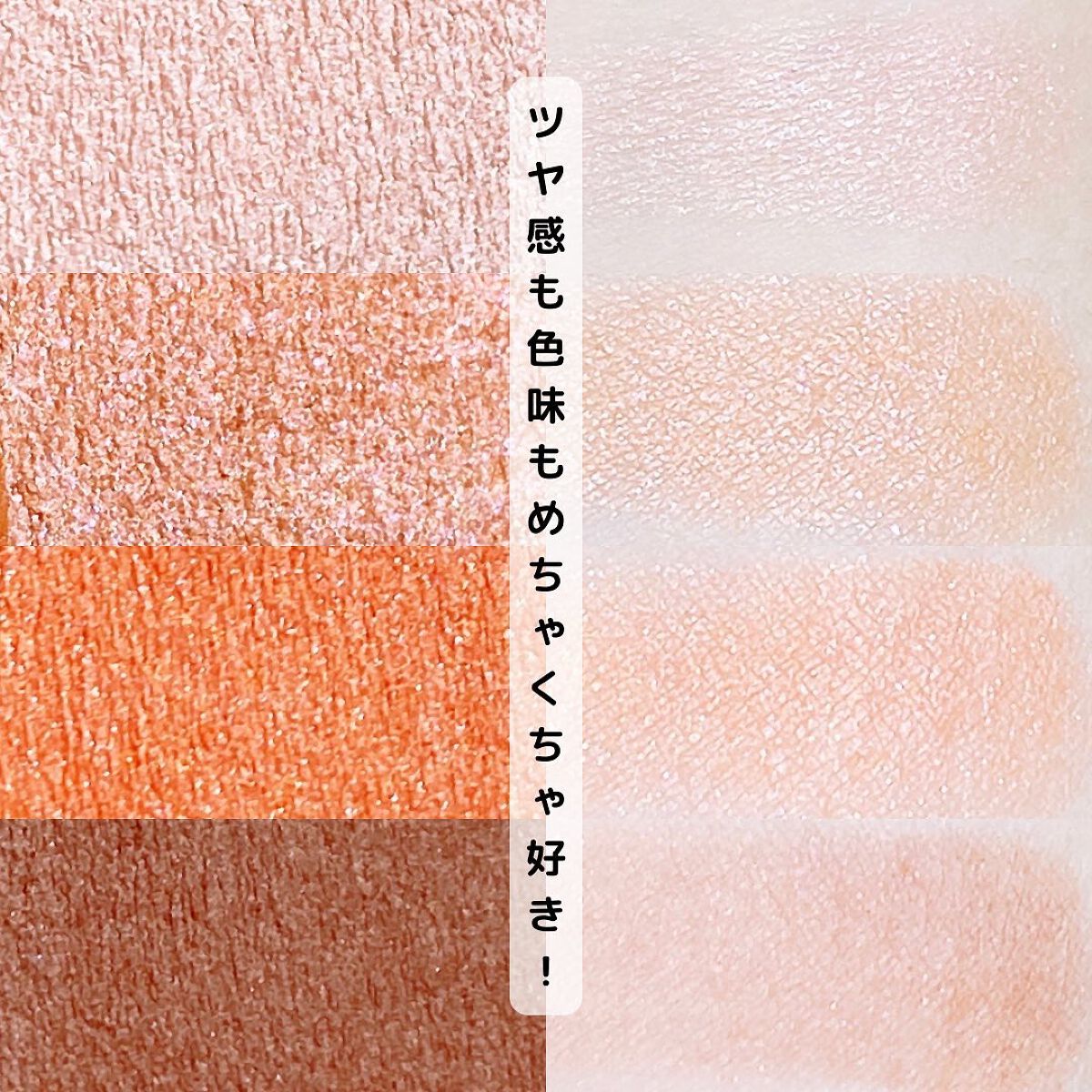 こんなに高クオリティで良いの?と疑ってしまうほどキャンメイクのアイシャドウの中ではダントツで粉質が良いなと感じます😌😌色展開も豊富でどれも可愛い🍊 明るくクリアな色味でラメ・パールの輝きが美しいです👏🏻 程よいサイズのラメやパールがキラキラ〜チラチラ〜と輝いているのが可愛すぎる🥲🧡💛