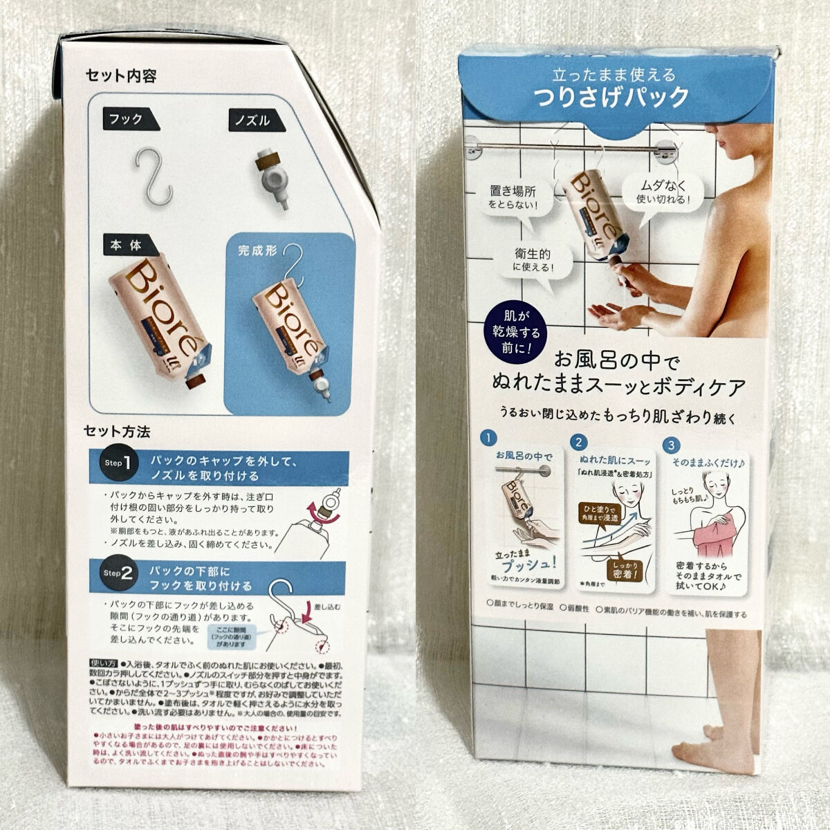 - 肌が乾燥する前に、お風呂の中でぬれたままスーッと一気にボディケア! うるおい閉じ込めたもっちり肌ざわり続く。 お風呂の中でつりさげて、立ったまま使えるつりさげパックは、置き場所をとらず、衛生的に、ムダなく使い切れる。 軽い力でカンタン液量調整できる、らくらくスイッチ採用。 ○顔までしっとり保湿 ○弱酸性 ○素肌のバリア機能の働きを補い、肌を保護する ○無香料