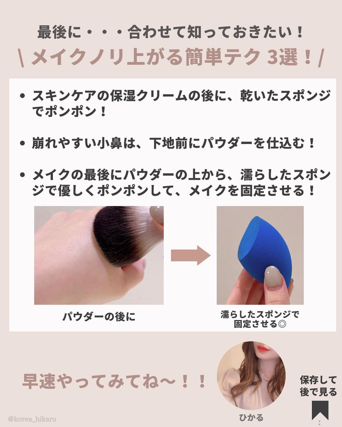 ウォンジョンヨの下地も早速レビュー!!🔥 思っていたよりも、素肌に溶け込み馴染むカラーでした💛 ツヤ肌好きさんに推したいのが、ダルバ✨ 韓国オリヤンでも1位になっていて、よく現地でも広告を見かけます😍 あとバニラコのプライマーもご紹介!🫶 去年も推していた、too cool for schoolの下地にそっくりの使用感で、こちらも馴染ませるとサラッサラに変化します💡 仕込むだけで、毛穴落ちが軽減するので、ぜひチェックしてみてくださいね🤭✨