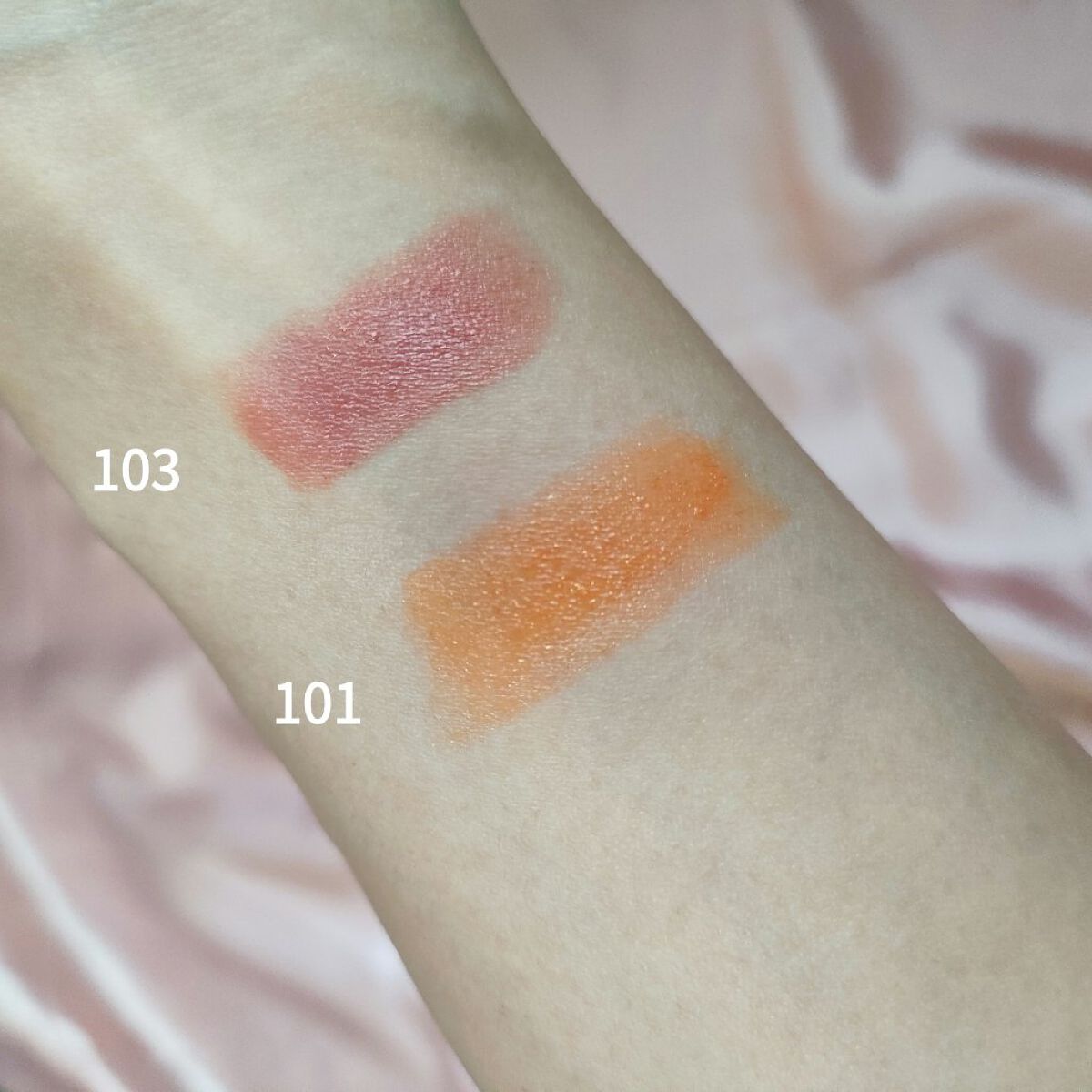 定番カラーのイエベカラーがぜんぶ揃ったので、ひとつひとつ個人的な感想言ってきます! 最初塗った時は全然発色しないと思いましたが、淡めのメイクに慣れたからか、今ではめちゃめちゃ使いやすいヘビロテリップに君臨した! 可愛くてフレッシュなオレンジ!買ったばかりの時はよく使っていてお気に入りだったけど、101を手に入れてからはオレンジリップといえば101ばかり使うようになってしまった。。