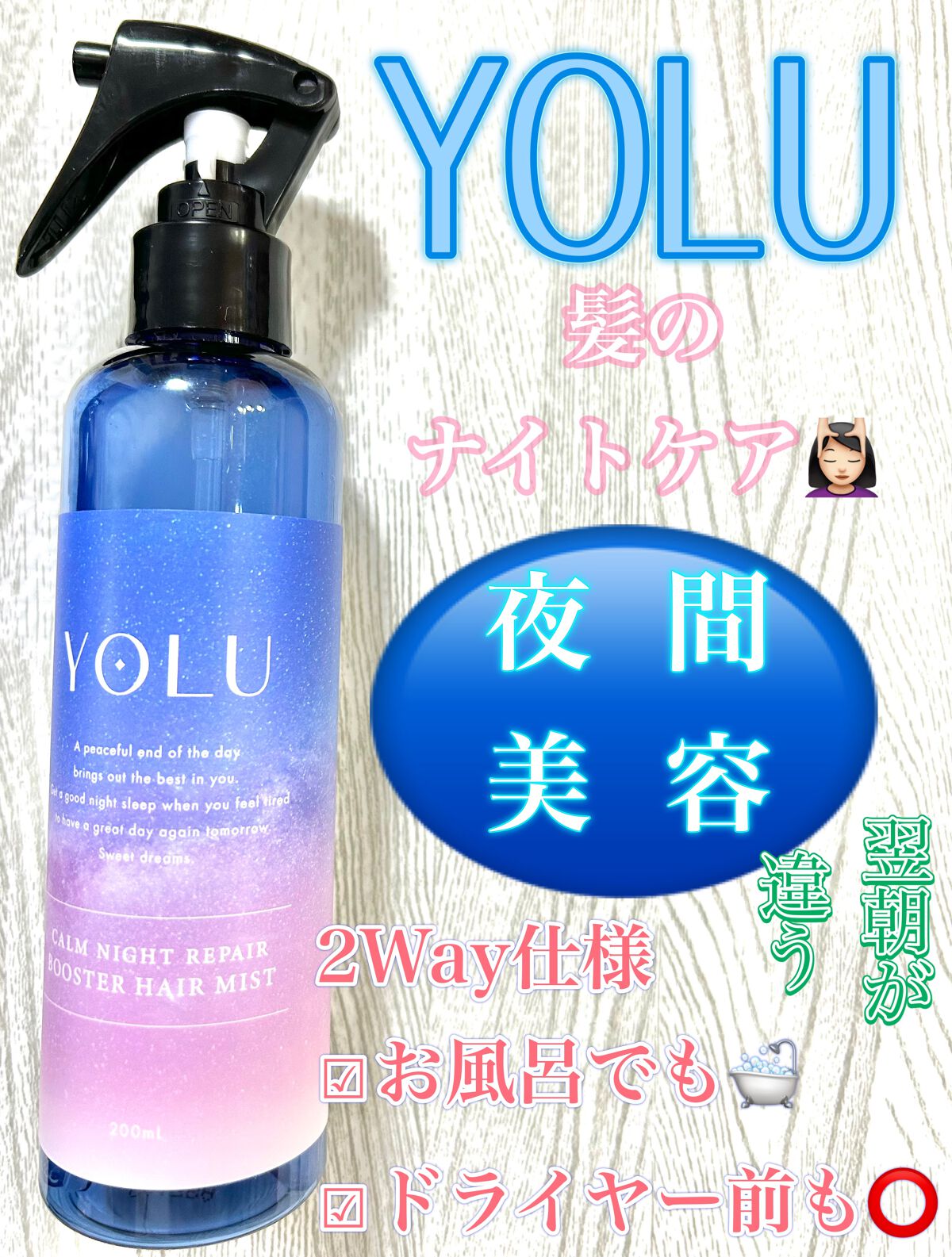 商品詳細情報YOLU カームナイトリペアブースターヘアミスト