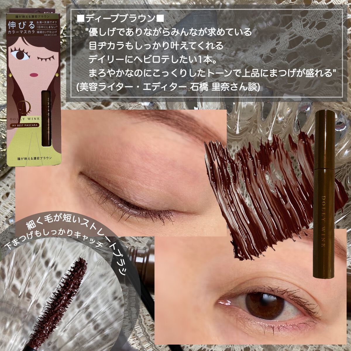 | ブラウンのマスカラだと優しい印象になるので、デートや気分を変えたい時などに! | 詳細を見る | |