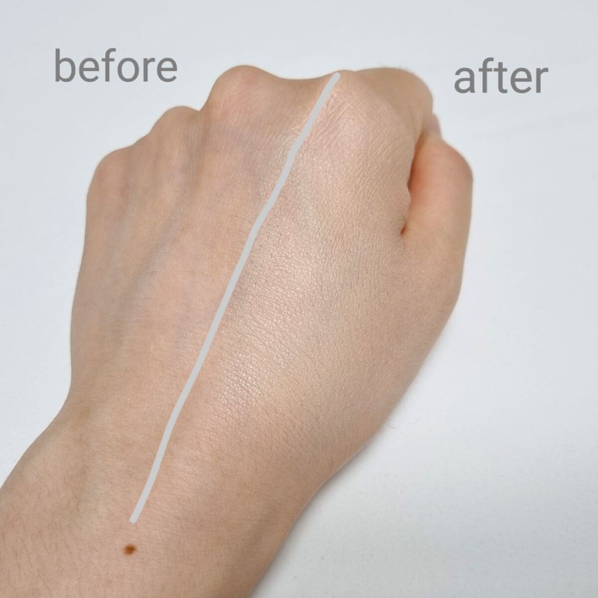 テクスチャーはしっとりとしていて、思ったよりもみずみずしいです。とても伸びがいいので少量でもすっ〜と伸びてくれます✨ 1番気に入ったのが持続力! 暑い日にメイクをすると化粧崩れや、てかりが特に気になるのですが💦1日使ってみてマスクをつけての外出にも関わらず化粧もほぼ崩れず、てかりが出なかったのがすごく嬉しかったです〜♡ 毛穴やくすみを自然にカバーしてくれるので、厚塗り感がなくて使いやすかったです😊
