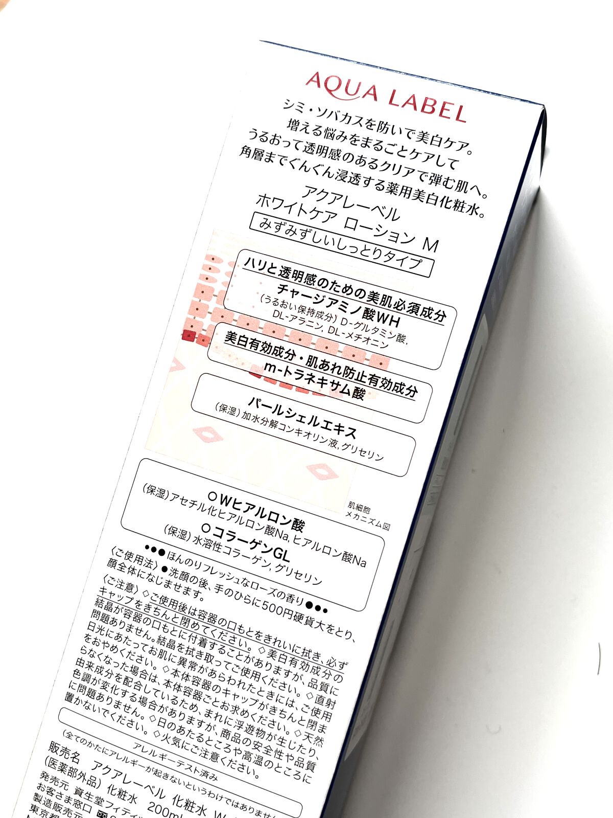 アクアレーベルブライトニングケアローションМ保湿成分のパールシェルエキス*¹、美白有効成分&肌あれ防止有効成分のm-トラネキサム酸を配合したローション✨シミ、ソバカス予防*²をしながら、クリアな肌に導いてくれるよ💎少しとろみのあるテクスチャー...