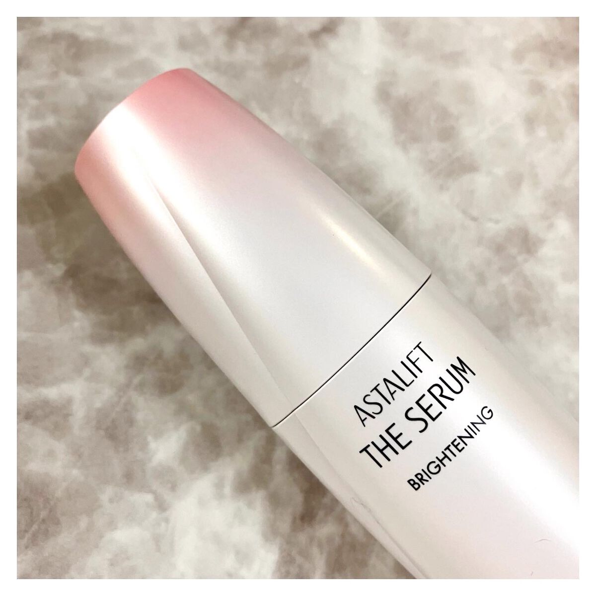 アスタリフト ザ セラム ブライトニング(医薬部外品)は抗炎症※4・美白有効成分トラネキサム酸と、抗炎症有効成分グリチルレチン酸ステアリルを配合しており肌への刺激ダメージ※1を防ぎ、メラニンの生成を抑止する商品特徴があります。 その他特徴の一つとしてアスタリフトこだわりのリポソームが使用されており独自の浸透型リポソーム※3から放出された美容成分が放出され、肌のすみずみに届けてくれる※5商品特徴があります。 ディスペンサータイプで、さっと出せて便利ですね。白くてとろっとした質感のセラム。華やかなローズ、イランイラン、ミュゲの花々が織りなす、フローラルグリーンの香りがただよいます。