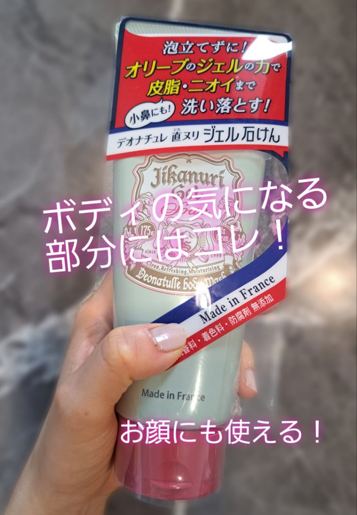 - \11年間ず~っと売上No.1*直ヌリ制汗デオドラントブランド/ 泡立てずに!オリーブのジェルの力で皮脂・ニオイまで**洗い落とす全身洗浄料「直ヌリジェル石けん」 ◆◆商品特長◆◆ 1.ニオイの原因となる酸化した皮脂汚れをすっきりと落としながら、うるおいは保つ 2.肌がキュキュッとする、新感覚のすっきりとした洗いあがり 3.主原料は天然オリーブオイル***で合成香料、着色料、防腐剤、無添加 オリーブとユーカリ由来の天然の色と香り 4.ミョウバン配合**** ◆◆こんな方へおすすめ◆◆ ・日ごろから制汗デオドラントを使っている人 ・いつも使っているボディソープでは汗やニオイがすっきり落とせていない気がする人 ・とにかく汗・ニオイをしっかり落としたいと思っている人 ==注意== ●お肌に合わないとき、傷、はれもの、湿疹等、異常のあるときは使用しない。●使用中、赤み、はれ、かゆみ、刺激等の異常があらわれたときは使用を中止し、皮フ科専門医等に相談する。そのまま使用を続けると症状が悪化する場合がある。●目に入らないよう注意し、万一目に入った場合は、すぐに洗い流す。異常が残る場合は眼科医に相談する。●使用後はキャップをしっかり閉め、直射日光のあたる場所、極端に高温、低温、または多湿の場所を避けて保管する。●乳幼児の手の届くところに置かない。 販売名:DNジェルソープa *インテージSRI+制汗剤市場 2013年5月~2024年4月 ソフトストーンW(販売名:デオナチュレソフトストーンEX(リニューアル前処方)・DN薬用スティックFe)累計販売金額 **ニオイの元となる皮脂を洗浄することによる ***基剤:オリーブ果実油 ****アルムK(収れん剤)