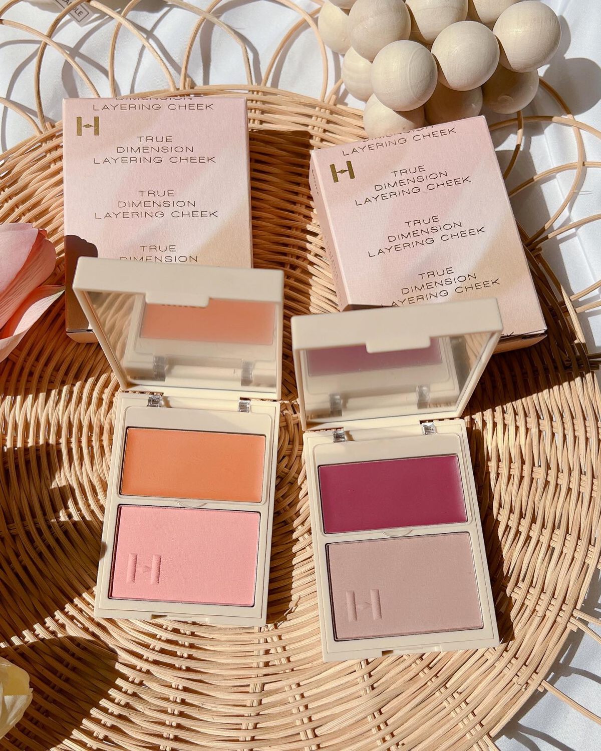 - ■ニュアンスカラーを重ねて彩る #レイヤリングチーク ✓2つの色とテクスチャーが交差し、本来の雰囲気を多彩に演出して自然な立体感を ナチュラルに馴染む2種類のテクスチャーでチークだけで立体感のある輪郭を自然に演出します。 クリームテクスチャーで自然に深みを出し、パウダーテクスチャーで生き生きとした華やかな立体感を与えるコントゥアリングメイクに仕上げます。 ✓密着力と持続力を高めるパウダーとクリームのデュオテクスチャー シルキーなクリームテクスチャーのこだわりの密着力で、よれにくく均等に伸び、 繊細な粒子のパウダーテクスチャーをレイヤリングして密着力と持続力を高めます。 ✓僅かな差で、本来の雰囲気を多彩に演出できる感覚的な楽しさ アイメイクやリップにも重ね塗りしてマルチユースで使用も可能。 量を調整しながら本来の雰囲気を多彩に演出し、感覚的な楽しみを与えます。