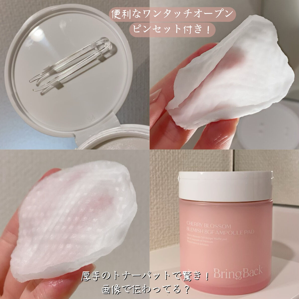 パッドが厚手で肌あたりよくふかふか。 美容液たーっぷり含んだパッドが お肌にあてるとじゅわーってなって 使い心地が最高✧︎ 部分パックしても案外はがれてこなくて 毛穴がきゅっと締まる感じと さっぱりなのにしっかり保湿されるところ。透明感もでてお気に入り🤍