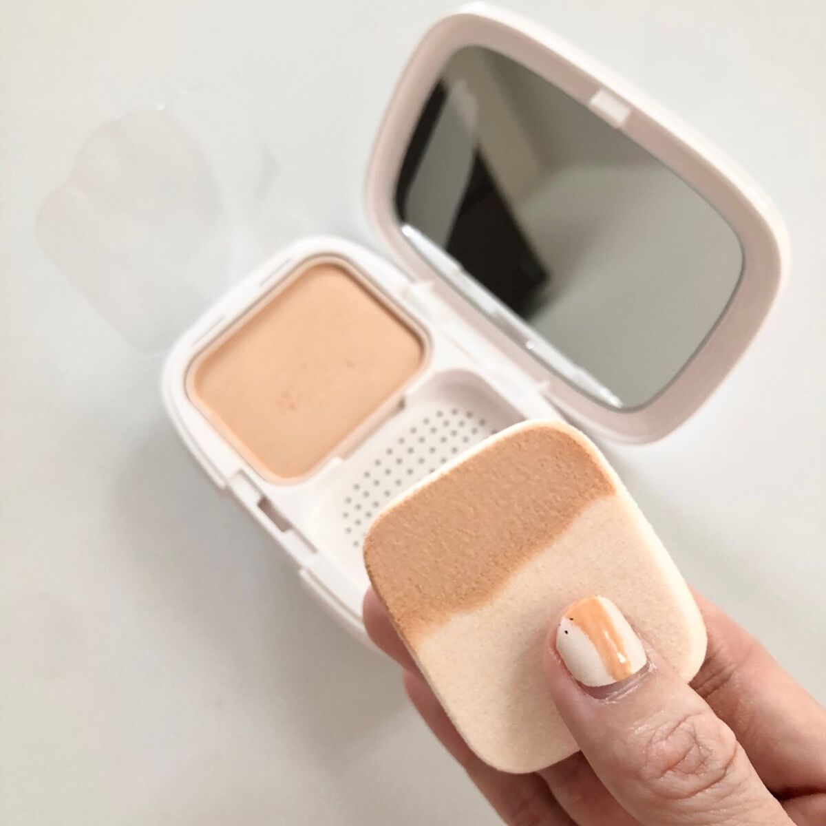沈み込むタイプのやわらかいスポンジです。チョンととるだけでいいカバー力なので、ふたの裏でつける量を調節。 頬の高い部分から伸ばし、外側へ伸ばしていきます。さらにカバーしたい悩みのあるところに、重ねつけ。 ①オークル やや明るめ〜中間的な明るさ ナチュラルで落ち着いたカラー。暗めの色合いなのでパウダーで調節しています。