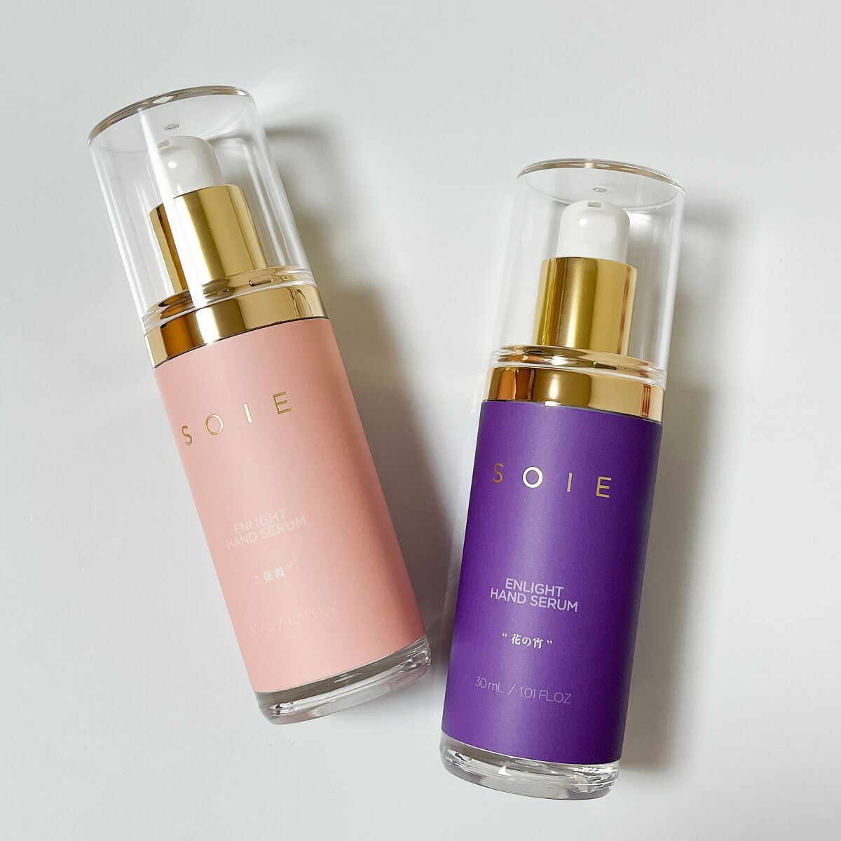 - SOIE独自の手の研究から開発された "オールインワン ハンド美容液"本質だけにこだわり抜いて、手が本来持つ "潤い" "なめらかさ" "輝き" を守ることだけにフォーカスした成分でレシピを組んでいます。ベタつきがなく、すぐに手に馴染むサラサラのテクスチャーに仕上げているため日中使いがしやすい製品です。更に、爪のための美容成分も高濃度で配合。ネイルによる乾燥や爪を保護するようにレシピが組まれた "オールインワン ハンド美容液" です。