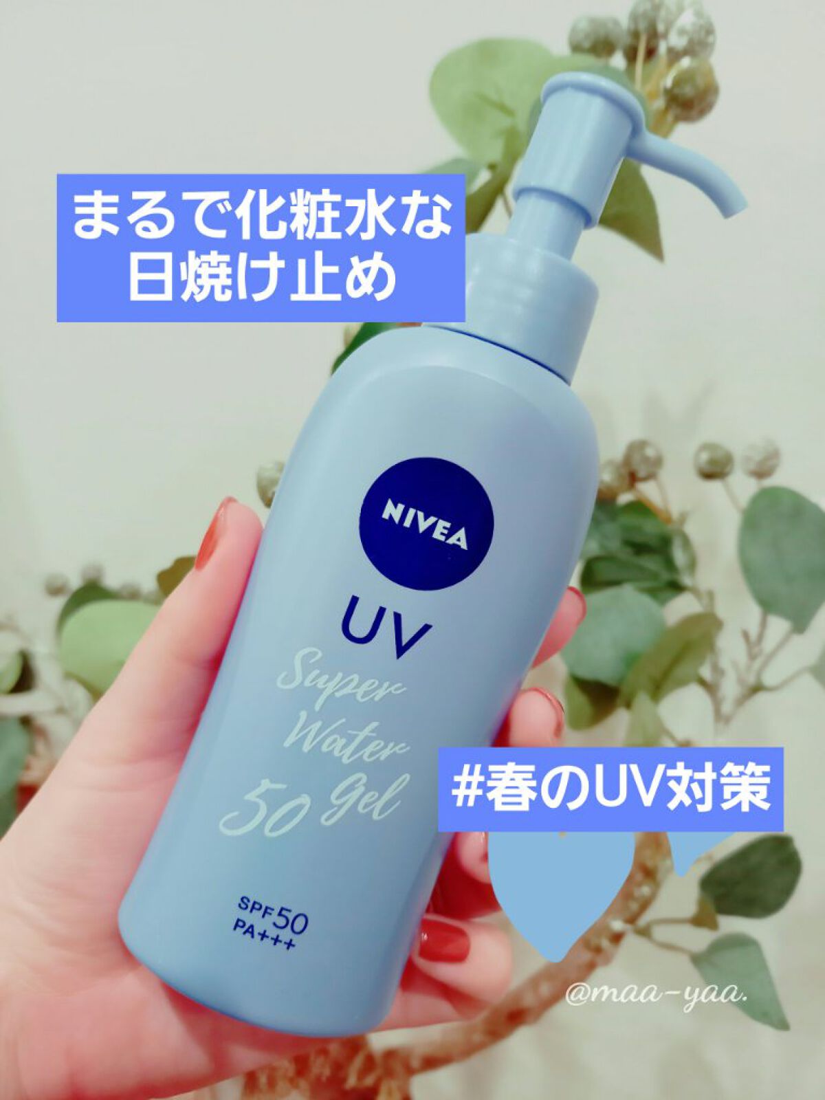 ■スーパーウォータージェル/ニベアSPF50PA+++140g毎年リピートで何度も購入している日焼け止めです。デイリーに使う体用の日焼け止めはこれ一択です。・良い点伸びの良いテクスチャ。ベタつかず軽い使い心地なのに乾燥を感じない。透明で白浮き...