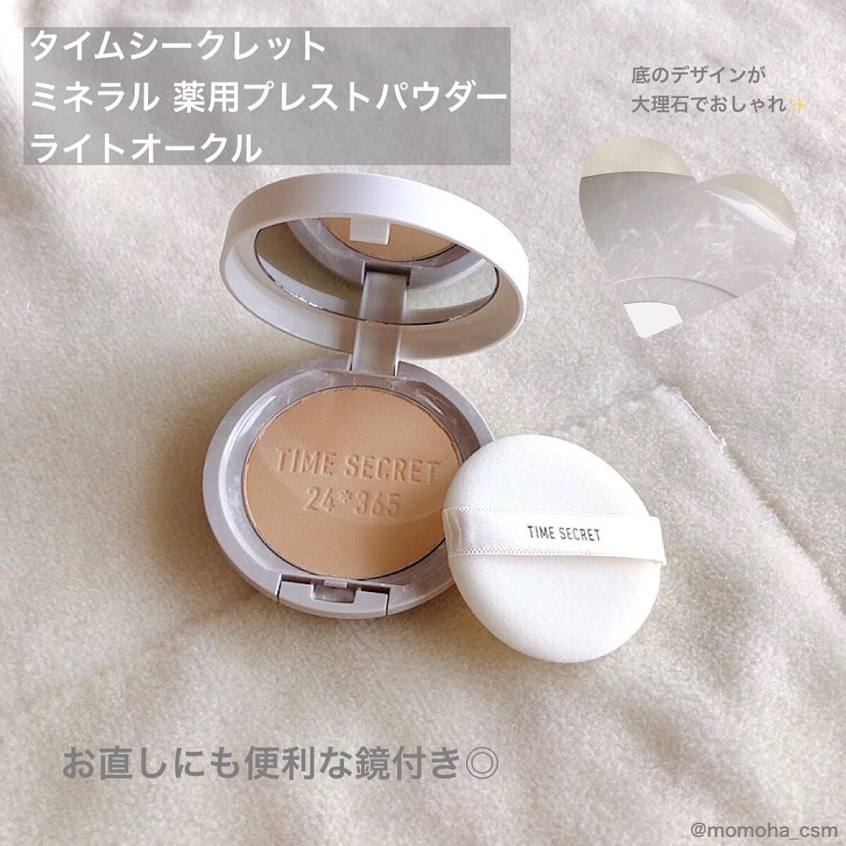サラサラ♡フェイスパウダーの代わりにも💓TIMESECRETミネラル薬用プレストパウダーライトオークル¥1,980〜私は、フェイスパウダー代わりに使用したくて1番明るいライトオークルにしました🙌軽い付け心地で仕上がりサラサラ✨かなりナチュラル...