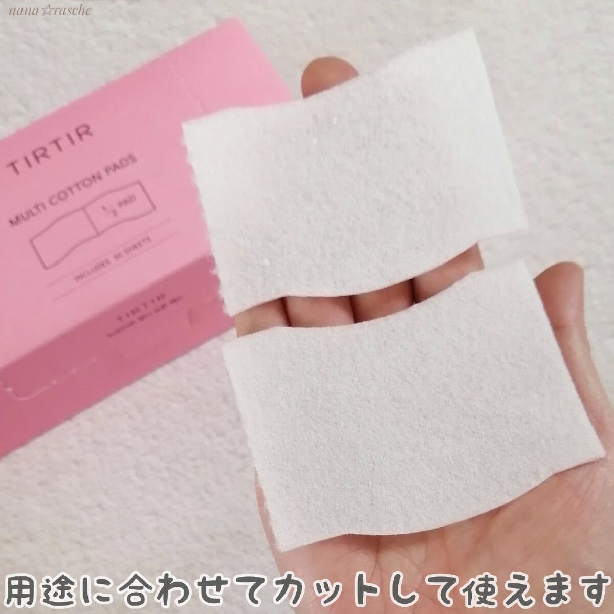 スポンジっぽい手触りで液含みがとてもいい 2カットで約12cc含むからびちゃびちゃのコットンパックにできますよー💕 説明には「普段の1/2量で使用できます」と書いてあるけど、普段よりたくさん化粧水を使いたいときにわたしはおすすめしたい😊