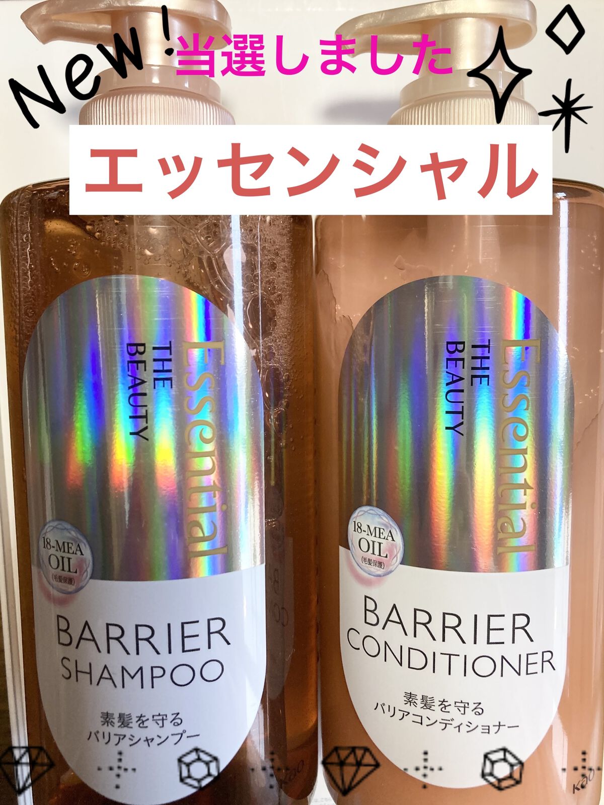 エッセンシャルプレミアムバリアシャンプー・コンディショナーシルキー&スムース〈説明〉・シャンプー・コンディショナー・450ml(両方とも)〈感想〉ホワイトピーチ&ムスクの香りは良い匂いで良かったです。シャンプーの洗浄力には私的には満足しました...