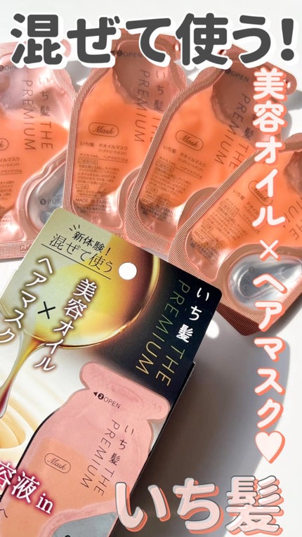 - ●「日本の髪を本質から考える。*1」ヘアケアブランド ●日本の髪研究の成果。アイロン等の熱ダメージによる乾燥髪のためのプレミアムダメージケアシリーズ ●今まで体験したことのない*2美容オイルを注入、混ぜるヘアマスク(洗い流すトリートメント) ●手触り、感動的。集中補修×オイルコートで、ヘアマスクとも、ヘアオイルとも違う体験で、つるんとした髪へ。 ●髪内部と外側をWでケアする「プレミアムWリペアシステム」 ・集中補修成分「高濃度*3米ぬか発酵導入美容液*4」配合のヘアマスクで、髪の内部を補修 ・指通りUP成分「和草・導入美容オイル*5」とドライヤーの熱を味方にキューティクルを密着する「ヒートリペアコート成分*6」で、髪の外側をコートして指通りをアップ ●つややかな八重桜の香り(天然桜エッセンス配合香料) ●サルフェートフリー(硫酸系界面活性剤不使用) ●合成着色料フリー *1:日本の風土や気候などの環境に合わせたヘアケア方法を研究しています。 *2:いち髪ブランド内 *3:いち髪 THE PREMIUM エクストラダメージケアトリートメント(シャイニーモイスト)比 *4:米ぬか発酵液、ハス種子発酵液、酒粕エキス、セバシン酸ジエチル、グリセリン *5:米胚芽油、オリザノール、セバシン酸ジエチル *6: γ-ドコサラクトン