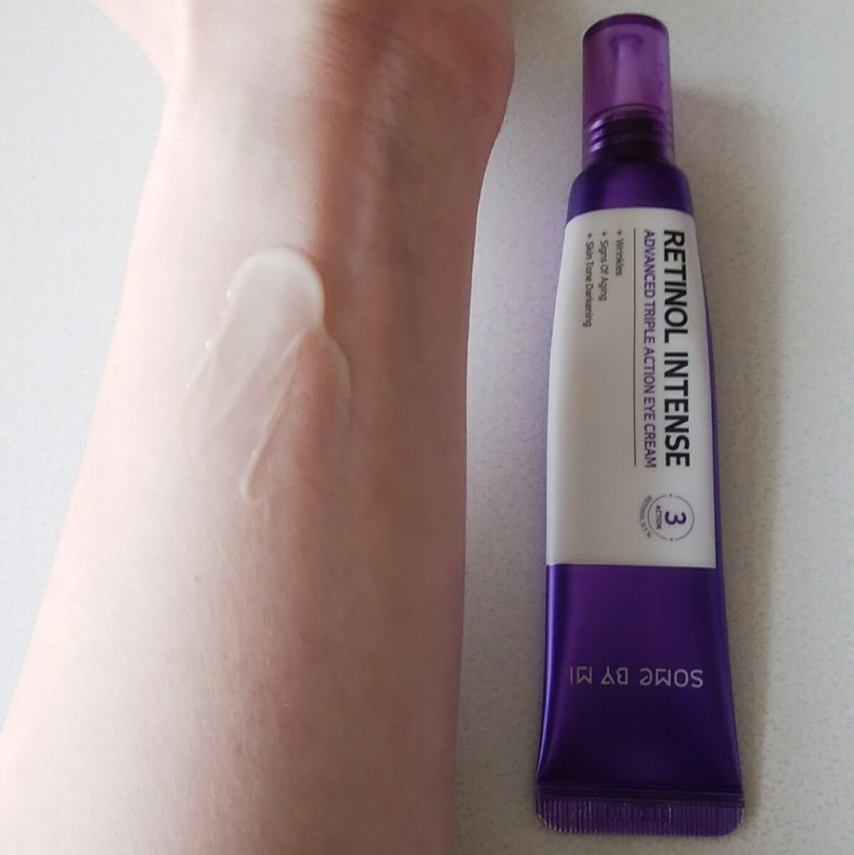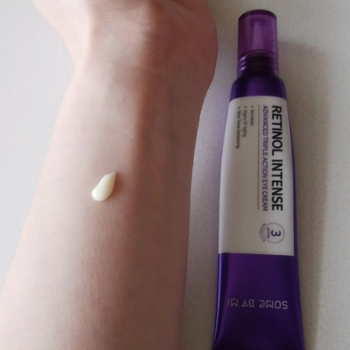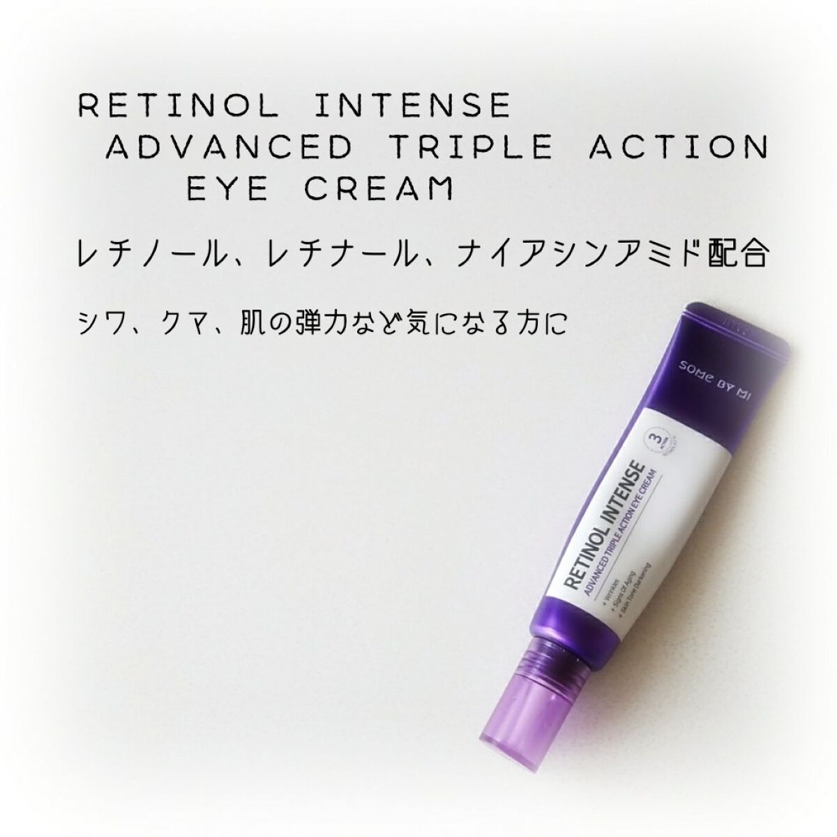 レチノール0.1%+グルタチオン配合で目のくま・小じわを集中ケア 目元以外にも口元や眉間などにも使えて、さまざまなシワ悩みにアプローチしてくれます💜 柔らかくよく伸びるクリームで、結構しっとり感があるような使用感 べたつかずしっかり保湿される使用感なのが嬉しいです💕 この紫パケが特徴的 それぞれの肌に合わせて、使用量などを調整して使うのが大切かなと思います。
