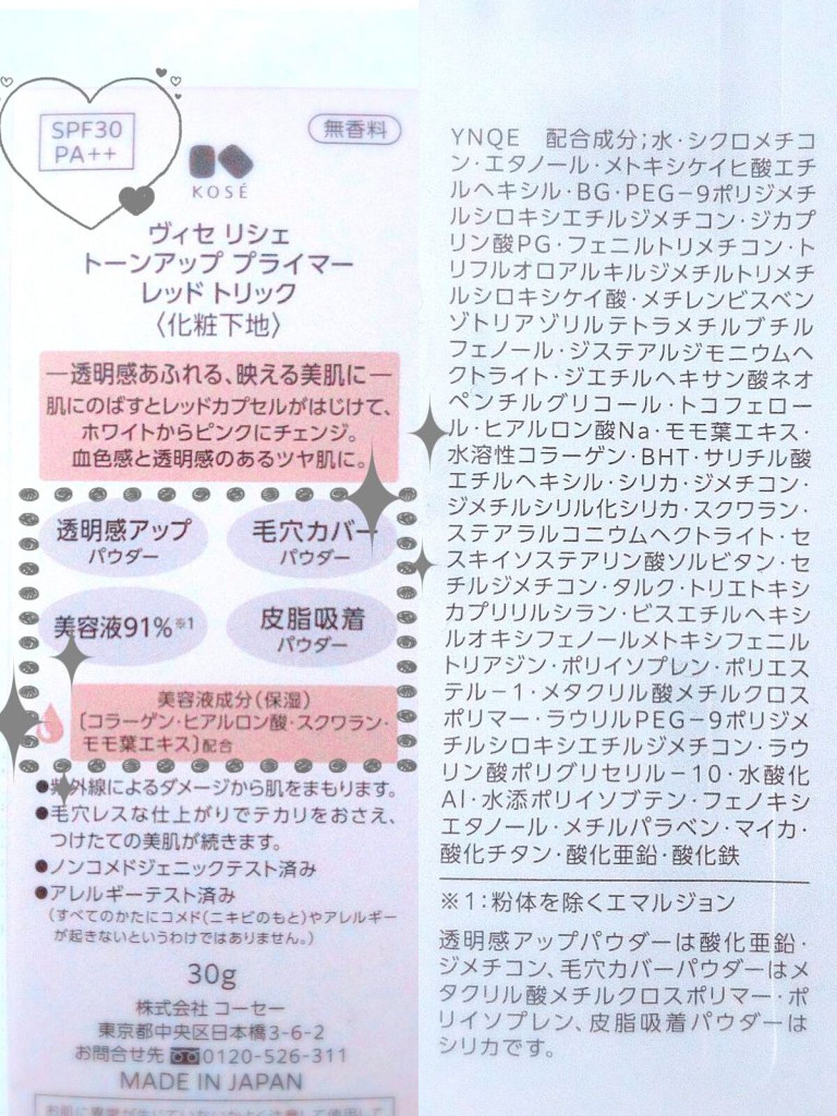 商品詳細情報Visée リシェ トーンアップ プライマー レッド トリック