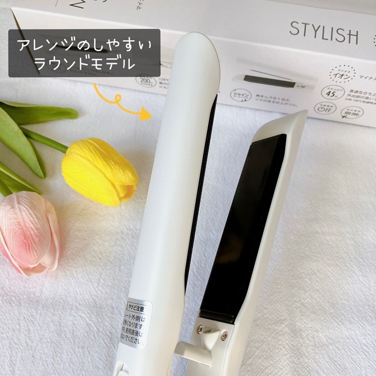 - シンプルでスタイリッシュな長年愛されているホワイト。 ラウンドフォルムを採用し、キレイなストレートはもちろん、カールや波ウェーブ、スパイラルなどのアレンジも簡単。 何種類ものヘアアイロンを使い分けるのは少し面倒、ストレートアイロンだけで様々なアレンジを楽しみたい、そんな願いを実現するヘアアイロンが新登場。 カールがしやすいラウンドフォルムで、内巻き・外巻、波ウェーブなどアレンジ自由自在/少ない力で髪をしっかりキャッチ、疲れにくくアレンジも思い通りに/マイナスイオン搭載/120〜200℃の無段階温度調節機能/忙しい朝にうれしい約45秒のクイックヒートアップ(※1)/消し忘れにも安心な自動電源OFF機能を採用(約30分後)(※2)/シャインコーティングで熱をムラなく伝え、ツヤのある仕上がりに。 (※1) 100℃到達時点 (※2) 電源を入れた時点から