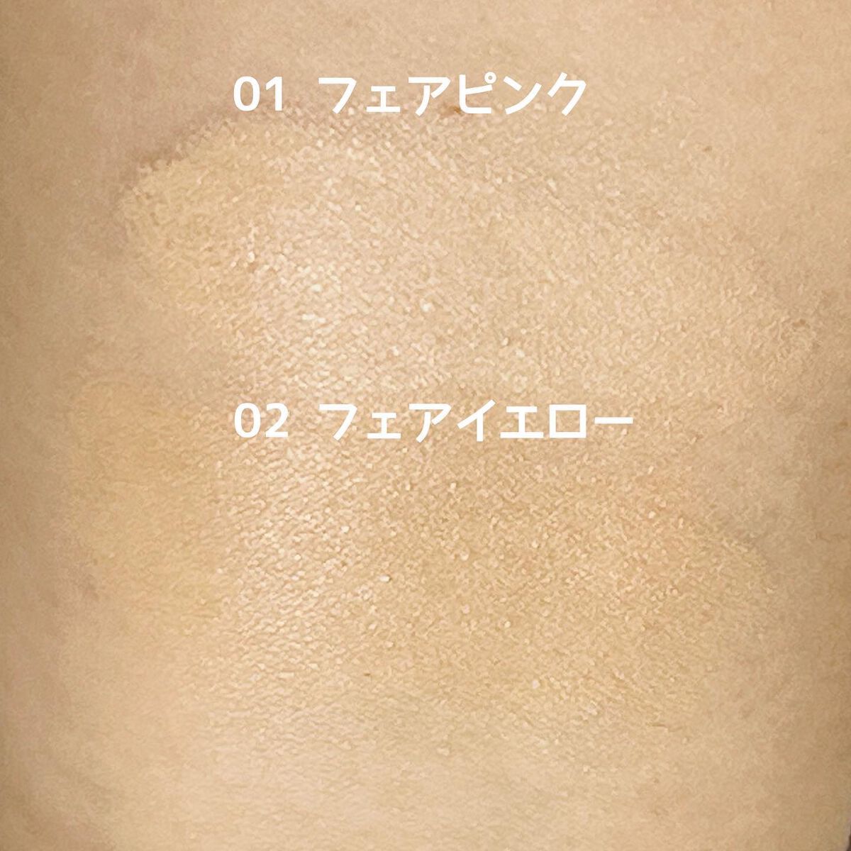 - <01 フェアピンク> 水、グリセリン、カプリリルメチコン、プロパンジオール、ジメチコン、ペンチレングリコール、ナイアシンアミド、(ジメチコン/(PEG-10/15))クロスポリマー、エタノール、塩化Na、フェノキシエタノール、カプリリルグリコール、トリエトキシシリルエチルポリジメチルシロキシエチルジメチコン、トリイソステアリン酸イソプロピルチタン、アスコルビルグルコシド、EDTA-2Na、香料、DPG、ヒアルロン酸Na、クエン酸Na、リナロール、リモネン、トコフェロール、ベンジルアルコール、[+/-]、酸化チタン、酸化鉄、アルミナ <02 フェアイエロー> 水、グリセリン、カプリリルメチコン、プロパンジオール、ジメチコン、ペンチレングリコール、ナイアシンアミド、(ジメチコン/(PEG-10/15))クロスポリマー、エタノール、塩化Na、フェノキシエタノール、カプリリルグリコール、トリエトキシシリルエチルポリジメチルシロキシエチルジメチコン、トリイソステアリン酸イソプロピルチタン、アスコルビルグルコシド、EDTA-2Na、香料、DPG、ヒアルロン酸Na、クエン酸Na、リナロール、リモネン、トコフェロール、ベンジルアルコール、[+/-]、酸化チタン、酸化鉄、アルミナ <03 ナチュラルピンク> 水、グリセリン、カプリリルメチコン、プロパンジオール、ジメチコン、ペンチレングリコール、ナイアシンアミド、(ジメチコン/(PEG-10/15))クロスポリマー、エタノール、塩化Na、フェノキシエタノール、カプリリルグリコール、トリエトキシシリルエチルポリジメチルシロキシエチルジメチコン、トリイソステアリン酸イソプロピルチタン、アスコルビルグルコシド、EDTA-2Na、香料、DPG、ヒアルロン酸Na、クエン酸Na、リナロール、リモネン、トコフェロール、ベンジルアルコール、[+/-]、酸化チタン、酸化鉄、アルミナ <04 ナチュラルイエロー> 水、グリセリン、カプリリルメチコン、プロパンジオール、ジメチコン、ペンチレングリコール、ナイアシンアミド、(ジメチコン/(PEG-10/15))クロスポリマー、エタノール、塩化Na、フェノキシエタノール、カプリリルグリコール、トリエトキシシリルエチルポリジメチルシロキシエチルジメチコン、トリイソステアリン酸イソプロピルチタン、アスコルビルグルコシド、EDTA-2Na、香料、DPG、ヒアルロン酸Na、クエン酸Na、リナロール、リモネン、トコフェロール、ベンジルアルコール、[+/-]、酸化チタン、酸化鉄、アルミナ