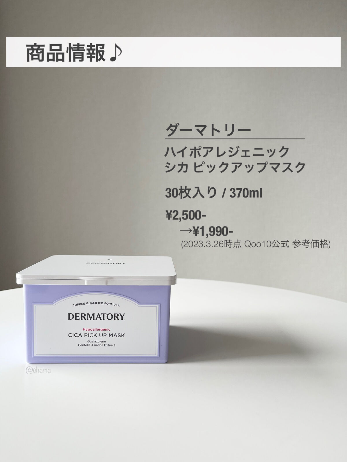 商品詳細情報Dermatory ハイポアラジェニックシカピックアップマスク