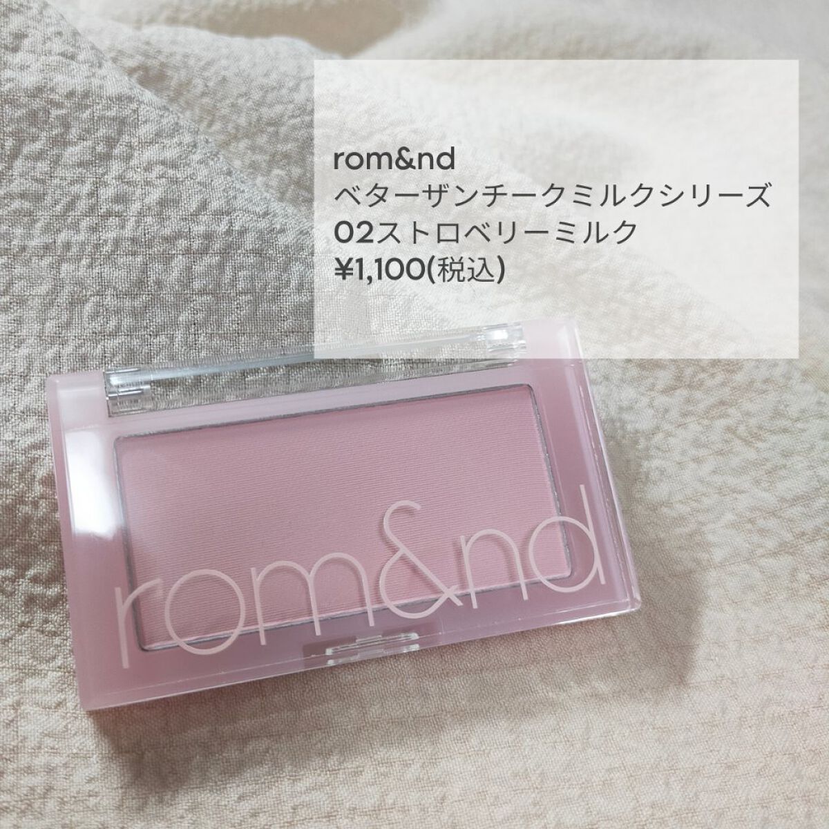 華やかふんわりチークのお気に入り𝜗𝜚˚⋆rom&ndベターザンチーク𓂃最近はこの2色をよく使っています🔁☁odimilk:ミルク感たっぷりの青みピンク🍑peachchip:ジューシーな桃の血色感ストロベリーミルクを使い切ってしまってからやっぱ...
