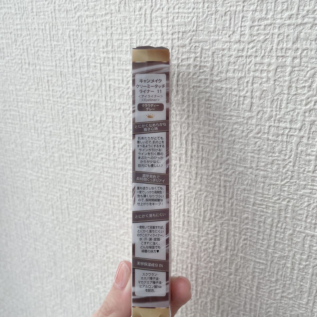 くっきり濃密発色!キレイなラインが長続き! 1.5mmの超極細芯で、まつげのすき間埋めもラクラク、するするとなめらかな描き心地のアイライナー。 するするとろけるような描きごこちで、力を入れずになめらかに描ける。擦れにも強く崩れにくいところも大好き♡ 今回購入した11 クラウディーグレーはブラウンみのあるグレー。肌馴染みが良く悪目立ちしないのに明るすぎないのでしっかりと目力をアップしてくれる!
