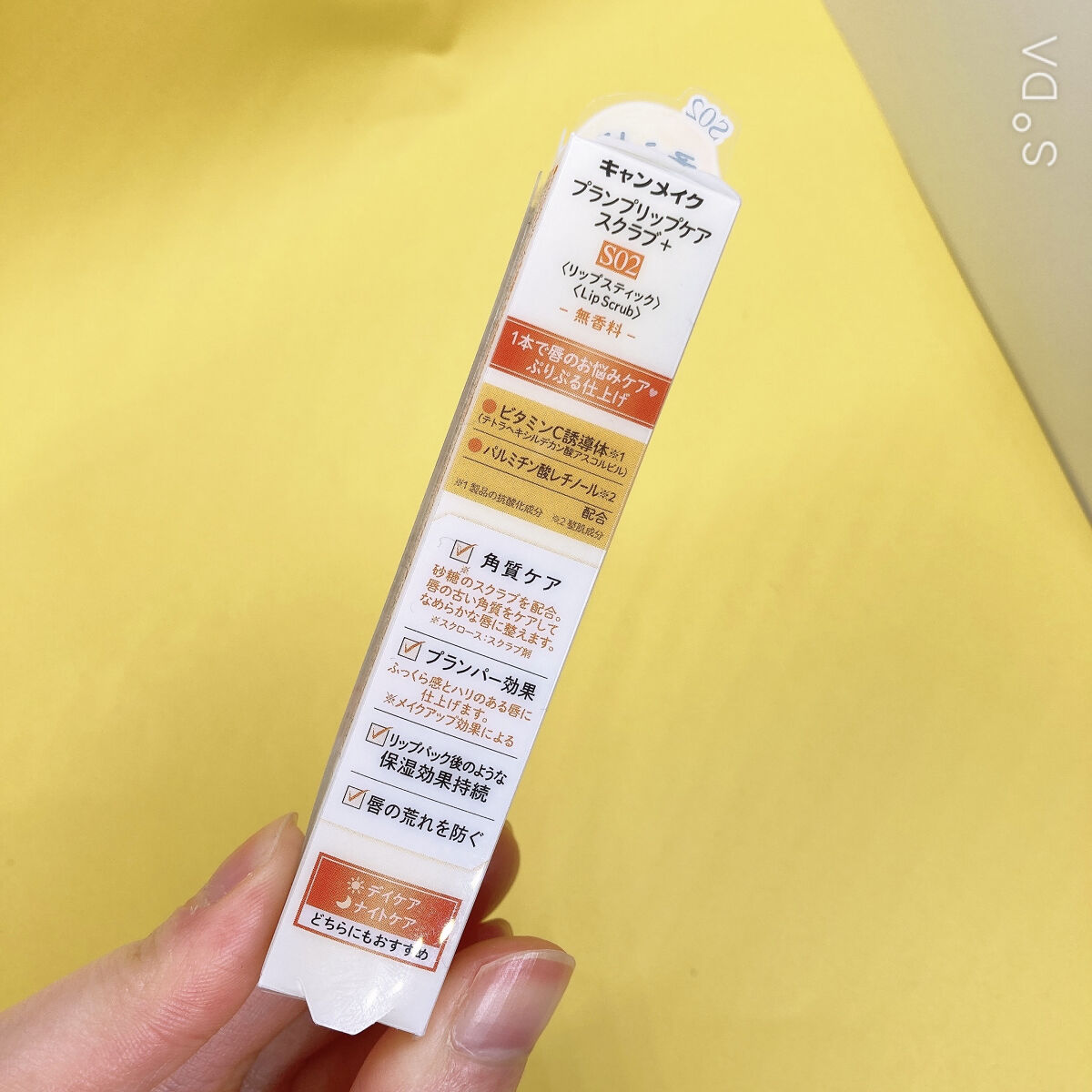 - うれしい成分をプラスした うるおい&角質ケアができるリップスクラブ S01…ヒアルロン酸Na(保湿成分)・セラミドNP(保湿成分) 配合 S02…ビタミンC誘導体(製品の抗酸化成分)・パルミチン酸レチノール(整肌成分) 配合 S03…ドクダミエキス(整肌成分)・ツボクサ葉/茎エキス(整肌成分) 配合 プランプリップケアスクラブに各色2種ずつ成分をプラスしたタイプ。 唇の上で溶けるお砂糖のスクラブが古い角質を優しくオフして、なめらかな唇に整えます。 リップパックした後のような高保湿が持続します。 拭き取り・洗い流し不要なので、外出先でも手軽にケアできます。 ナイトケアにもオススメです。 清涼感のある使い心地 ・スクラブ目的として砂糖の粒子を配合しておりますが、唇の状態によって刺激に感じられる可能性がございますのでご注意ください。 ・強くこすると刺激を感じることがあります。こすりすぎないように注意してください。 ・大変柔らかいバームですので、1㎜程度繰り出してお使いください。 ・一度繰り出したバームは戻りませんのでご注意ください。