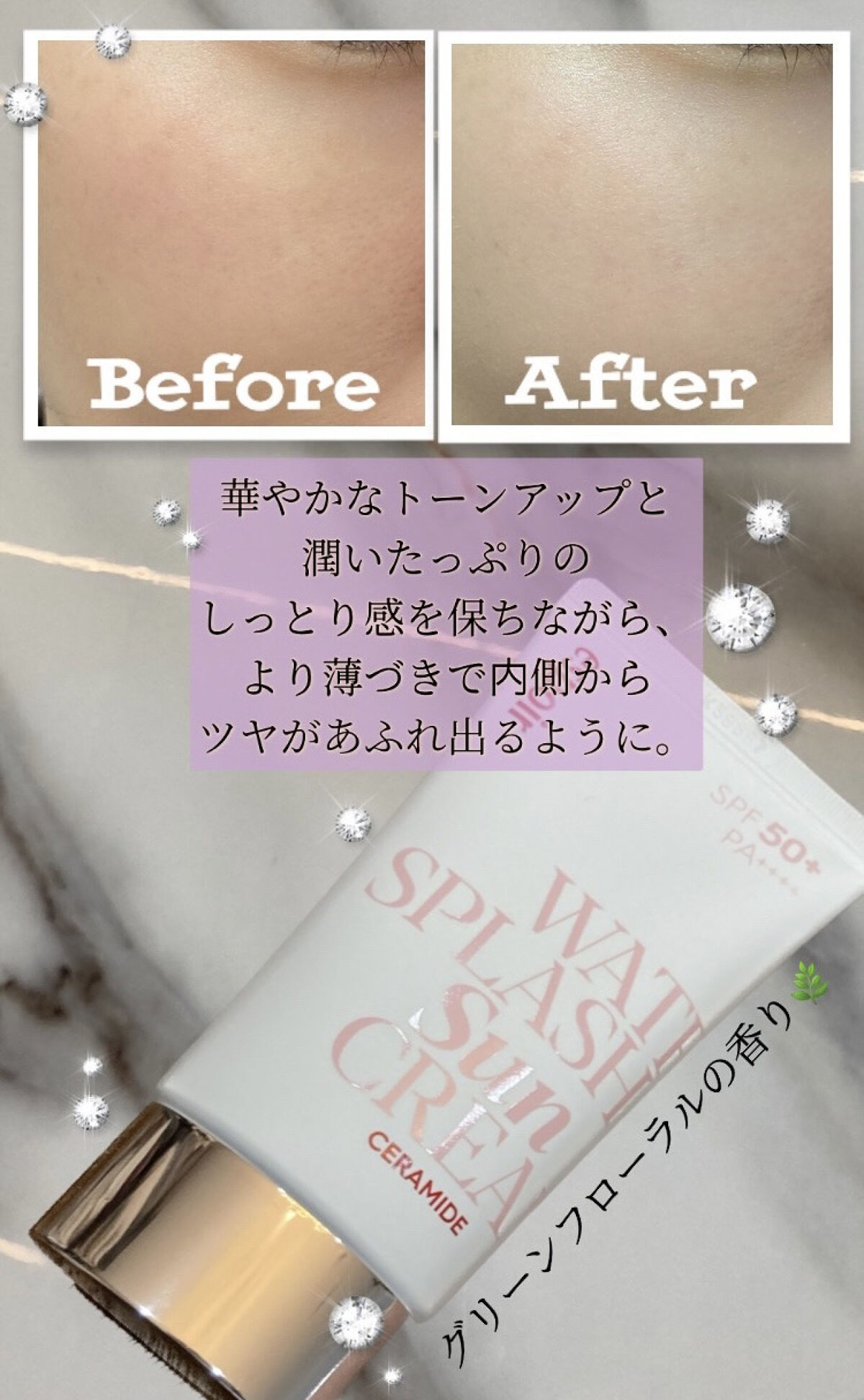 - スキンケア成分をプラスして潤いUP*!*自社製品内比較 化粧ノリが良くなる日焼け止め。 セラミド配合で乾燥からお肌を守り、潤いをキープするしっとりとしたピンクベースのクリーム。 水分感たっぷりでさらさらとした塗り心地。 自然なトーンアップ効果で透明感のあるツヤ肌をつくります。 ワントーン明るく見せたいとき、乾燥肌の方におすすめです。