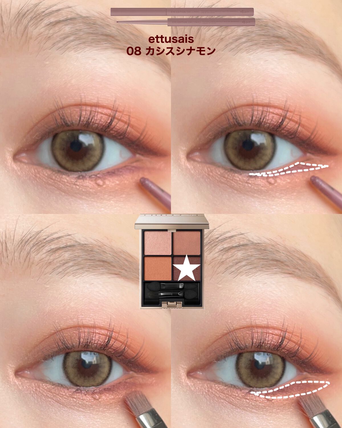 CANMAKEのパーフェクトスタイリストアイズ19アーバンコッパーを使用したアイメイク🤎組み合わせ次第で印象を変えれるこのアイシャドウ☝️今回は5色一気に使ってみました🌈発色がとてもよく、色の組み合わせもグラデーションしやすくて使いやすい😳真...