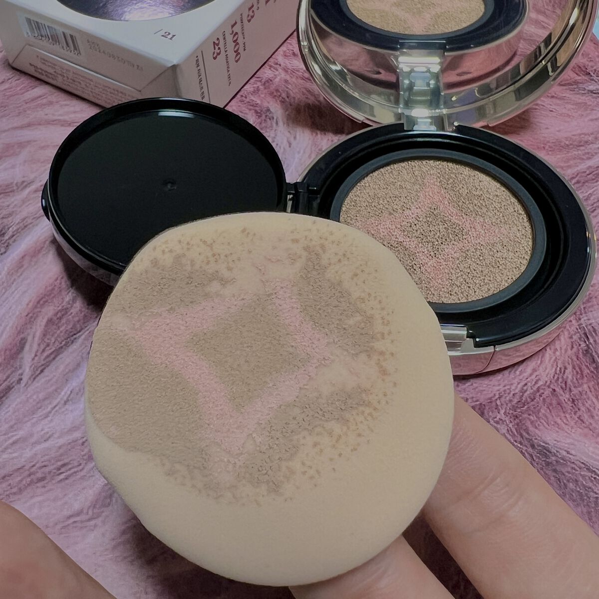 - しみ・そばかす・くすみをカバーし、肌トーンを均一に仕上げるクッションファンデーションと、華やかなピンクトーンを演出するトーンアップクリームのダブルベースを黄金比率でブレンドした2IN1 ブレンドクッション