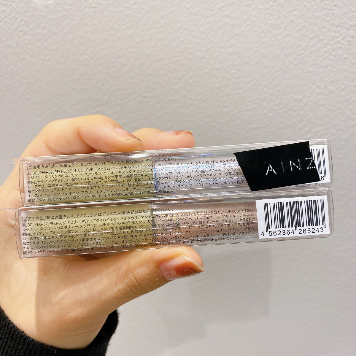 - <101 クリアゴールド> 水、BG、PEG-32、PEG‐6、グリセリン、PVP、(アクリロイルジメチルタウリンアンモニウム/VP)コポリマー、(アクリル酸ヒドロキシエチル/アクリロイルジメチルタウリンNa)コポリマー、スクワラン、エチルヘキシルグリセリン、ポリソルベート60、パンテノール、トコフェロール、アセチルヒアルロン酸Na、ナイアシンアミド、リン酸アスコルビルMg、リンゴ果実培養細胞エキス、α-グルカン、コーン油、パルミチン酸レチノール、グルコシルセラミド、ローズマリー葉エキス、PCA-Na、ビワ葉エキス、マグワ根皮エキス、乳酸Na、キサンタンガム、センチフォリアバラ花エキス、ブドウ葉エキス、加水分解コンキオリン、アルギニン、ノイバラ果実エキス、アスパラギン酸、PCA、ツボクサ葉エキス、レシチン、グリシン、アラニン、セリン、バリン、ユズ果実エキス、イソロイシン、トレオニン、プロリン、ヒスチジン、フェニルアラニン、フラーレン、メチルパラベン、フェノキシエタノール、ホウケイ酸(Ca/Na)、酸化チタン、酸化スズ <102 クリスタルブルー> 水、BG、PEG-32、PEG-6、グリセリン、PVP、(アクリロイルジメチルタウリンアンモニウム/VP)コポリマー、(アクリル酸ヒドロキシエチル/アクリロイルジメチルタウリンNa)コポリマー、スクワラン、エチルヘキシルグリセリン、ポリソルベート60、パンテノール、トコフェロール、アセチルヒアルロン酸Na、ナイアシンアミド、リン酸アスコルビルMg、リンゴ果実培養細胞エキス、α‐グルカン、コーン油、パルミチン酸レチノール、グルコシルセラミド、ローズマリー葉エキス、PCA-Na、ビワ葉エキス、マグワ根皮エキス、乳酸Na、キサンタンガム、センチフォリアバラ花エキス、ブドウ葉エキス、加水分解コンキオリン、アルギニン、ノイバラ果実エキス、アスパラギン酸、PCA、ツボクサ葉エキス、レシチン、グリシン、アラニン、セリン、バリン、ユズ果実エキス、イソロイシン、トレオニン、プロリン、ヒスチジン、フェニルアラニン、フラーレン、メチルパラベン、フェノキシエタノール、ホウケイ酸(Ca/Na)、酸化チタン、合成フルオロフロゴパイト、マイカ、ホウケイ酸(Ca/AI)、シリカ、酸化スズ、酸化鉄 <201 プリズムピンク> 水、BG、PEG-32、PEG-6、グリセリン、PVP、(アクリロイルジメチルタウリンアンモニウム/VP)コポリマー、(アクリル酸ヒドロキシエチル/アクリロイルジメチルタウリンNa)コポリマー、スクワラン、エチルヘキシルグリセリン、ポリソルベート60、パンテノール、トコフェロール、アセチルヒアルロン酸Na、ナイアシンアミド、リン酸アスコルビルMg、リンゴ果実培養細胞エキス、α-グルカン、コーン油、パルミチン酸レチノール、グルコシルセラミド、ローズマリー葉エキス、PCA-Na、ビワ葉エキス、マグワ根皮エキス、乳酸Na、キサンタンガム、センチフォリアバラ花エキス、ブドウ葉エキス、加水分解コンキオリン、アルギニン、ノイバラ果実エキス、アスパラギン酸、PCA、ツボクサ葉エキス、レシチン、グリシン、アラニン、セリン、バリン、ユズ果実エキス、イソロイシン、トレオニン、プロリン、ヒスチジン、フェニルアラニン、フラーレン、メチルパラベン、フェノキシエタノール、(PET/ポリメタクリル酸メチル)ラミネート、ホウケイ酸(Ca/Na)、酸化チタン、ホウケイ酸(Ca/AI)、マイカ、シリカ、酸化スズ、酸化鉄、合成フルオロフロゴパイト <202 プリズムボルドー> 水、BG、PEG-32、PEG-6、グリセリン、PVP、(アクリロイルジメチルタウリンアンモニウム/VP)コポリマー、(アクリル酸ヒドロキシエチル/アクリロイルジメチルタウリンNa)コポリマー、スクワラン、エチルヘキシルグリセリン、ポリソルベート60、パンテノール、トコフェロール、アセチルヒアルロン酸Na、ナイアシンアミド、リン酸アスコルビルMg、リンゴ果実培養細胞エキス、α-グルカン、コーン油、パルミチン酸レチノール、グルコシルセラミド、ローズマリー葉エキス、PCA-Na、ビワ葉エキス、マグワ根皮エキス、乳酸Na、キサンタンガム、センチフォリアバラ花エキス、ブドウ葉エキス、加水分解コンキオリン、アルギニン、ノイバラ果実エキス、アスパラギン酸、PCA、ツボクサ葉エキス、レシチン、グリシン、アラニン、セリン、バリン、ユズ果実エキス、イソロイシン、トレオニン、プロリン、ヒスチジン、フェニルアラニン、フラーレン、メチルパラベン、フェノキシエタノール、(PET/ポリメタクリル酸メチル)ラミネート、ホウケイ酸(Ca/Na)、ホウケイ酸(Ca/AI)、酸化チタン、マイカ、酸化鉄、シリカ、合成フルオロフロゴパイト、酸化スズ <103 シャンパンベージュ> 水、BG、PEG-32、PEG-6、グリセリン、PVP、(アクリロイルジメチルタウリンアンモニウム/VP)コポリマー、(アクリル酸ヒドロキシエチル/アクリロイルジメチルタウリンNa)コポリマー、スクワラン、エチルヘキシルグリセリン、ポリソルベート60、パンテノール、トコフェロール、アセチルヒアルロン酸Na、ナイアシンアミ