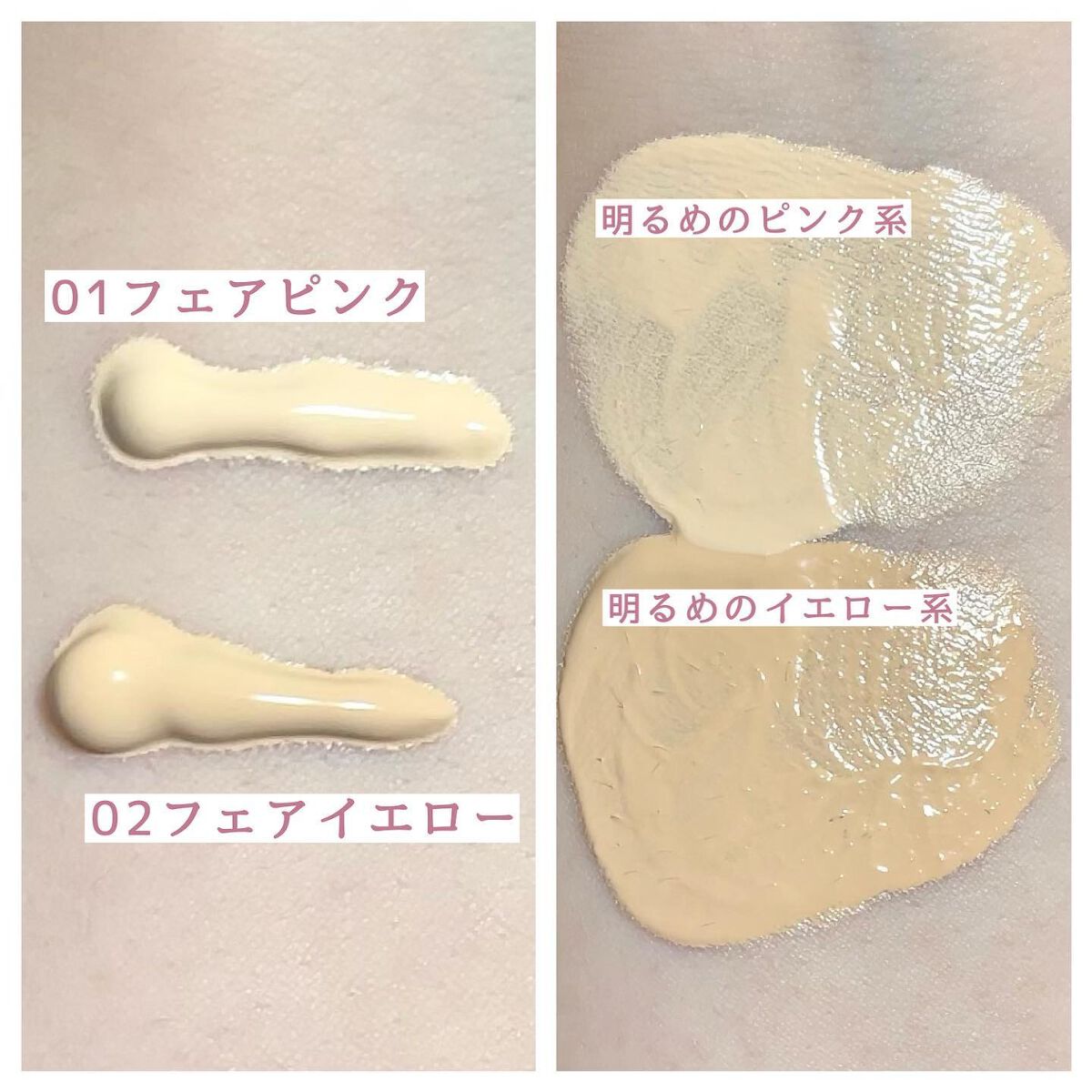 - <01 フェアピンク> 水、グリセリン、カプリリルメチコン、プロパンジオール、ジメチコン、ペンチレングリコール、ナイアシンアミド、(ジメチコン/(PEG-10/15))クロスポリマー、エタノール、塩化Na、フェノキシエタノール、カプリリルグリコール、トリエトキシシリルエチルポリジメチルシロキシエチルジメチコン、トリイソステアリン酸イソプロピルチタン、アスコルビルグルコシド、EDTA-2Na、香料、DPG、ヒアルロン酸Na、クエン酸Na、リナロール、リモネン、トコフェロール、ベンジルアルコール、[+/-]、酸化チタン、酸化鉄、アルミナ <02 フェアイエロー> 水、グリセリン、カプリリルメチコン、プロパンジオール、ジメチコン、ペンチレングリコール、ナイアシンアミド、(ジメチコン/(PEG-10/15))クロスポリマー、エタノール、塩化Na、フェノキシエタノール、カプリリルグリコール、トリエトキシシリルエチルポリジメチルシロキシエチルジメチコン、トリイソステアリン酸イソプロピルチタン、アスコルビルグルコシド、EDTA-2Na、香料、DPG、ヒアルロン酸Na、クエン酸Na、リナロール、リモネン、トコフェロール、ベンジルアルコール、[+/-]、酸化チタン、酸化鉄、アルミナ <03 ナチュラルピンク> 水、グリセリン、カプリリルメチコン、プロパンジオール、ジメチコン、ペンチレングリコール、ナイアシンアミド、(ジメチコン/(PEG-10/15))クロスポリマー、エタノール、塩化Na、フェノキシエタノール、カプリリルグリコール、トリエトキシシリルエチルポリジメチルシロキシエチルジメチコン、トリイソステアリン酸イソプロピルチタン、アスコルビルグルコシド、EDTA-2Na、香料、DPG、ヒアルロン酸Na、クエン酸Na、リナロール、リモネン、トコフェロール、ベンジルアルコール、[+/-]、酸化チタン、酸化鉄、アルミナ <04 ナチュラルイエロー> 水、グリセリン、カプリリルメチコン、プロパンジオール、ジメチコン、ペンチレングリコール、ナイアシンアミド、(ジメチコン/(PEG-10/15))クロスポリマー、エタノール、塩化Na、フェノキシエタノール、カプリリルグリコール、トリエトキシシリルエチルポリジメチルシロキシエチルジメチコン、トリイソステアリン酸イソプロピルチタン、アスコルビルグルコシド、EDTA-2Na、香料、DPG、ヒアルロン酸Na、クエン酸Na、リナロール、リモネン、トコフェロール、ベンジルアルコール、[+/-]、酸化チタン、酸化鉄、アルミナ