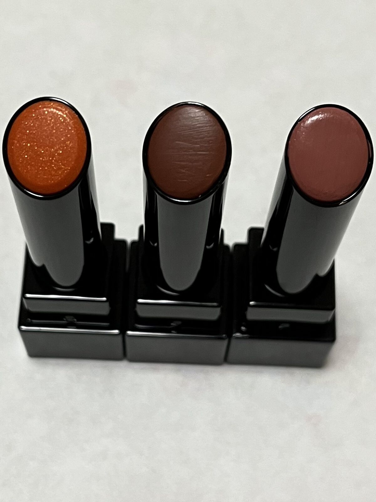 - <01 欲望の塊> テトライソステアリン酸ジペンタエリスリチル、トリ(カプリル酸/カプリン酸)グリセリル、オクチルドデカノール、ラウロイルグルタミン酸ジ(フィトステリル/オクチルドデシル)、ビスアルキル(C16-18)グリセリルウンデシルジメチコン、イソノナン酸イソトリデシル、水添ポリイソブテン、ラウロイルグルタミン酸ジ(オクチルドデシル/フィトステリル/ベヘニル)、パラフィン、合成ワックス、ダイマージリノール酸(フィトステリル/イソステアリル/セチル/ステアリル/ベヘニル)、マイクロクリスタリンワックス、水添マイクロクリスタリンワックス、ヒドロキシステアリン酸エチルヘキシル、トコフェロール、ホホバ種子油、オリーブ果実油、アーモンド油、(エチレン/プロピレン)コポリマー、ポリエチレン、ジメチコン、(+/-)(チタン/酸化チタン)焼結物、マイカ、ラウロイルアスパラギン酸Na、ラウロイルリシン、塩化亜鉛、酸化チタン、酸化鉄、水酸化Al、硫酸Ba、トリイソステアリン酸イソプロピルチタン、酸化スズ、ホウケイ酸(Ca/Al)、合成フルオロフロゴパイト、黄4、黄5、赤104(1)、赤201、赤202 <02 ピンクバナナ> テトライソステアリン酸ジペンタエリスリチル、トリ(カプリル酸/カプリン酸)グリセリル、オクチルドデカノール、ラウロイルグルタミン酸ジ(フィトステリル/オクチルドデシル)、ビスアルキル(C16-18)グリセリルウンデシルジメチコン、イソノナン酸イソトリデシル、水添ポリイソブテン、ラウロイルグルタミン酸ジ(オクチルドデシル/フィトステリル/ベヘニル)、パラフィン、合成ワックス、ダイマージリノール酸(フィトステリル/イソステアリル/セチル/ステアリル/ベヘニル)、マイクロクリスタリンワックス、水添マイクロクリスタリンワックス、ヒドロキシステアリン酸エチルヘキシル、トコフェロール、ホホバ種子油、オリーブ果実油、アーモンド油、(エチレン/プロピレン)コポリマー、ポリエチレン、ジメチコン、(+/-)(チタン/酸化チタン)焼結物、マイカ、ラウロイルアスパラギン酸Na、ラウロイルリシン、塩化亜鉛、酸化チタン、酸化鉄、水酸化Al、硫酸Ba、トリイソステアリン酸イソプロピルチタン、酸化スズ、ホウケイ酸(Ca/Al)、合成フルオロフロゴパイト、黄4、黄5、赤104(1)、赤201、赤202 <03 陽炎> テトライソステアリン酸ジペンタエリスリチル、トリ(カプリル酸/カプリン酸)グリセリル、オクチルドデカノール、ラウロイルグルタミン酸ジ(フィトステリル/オクチルドデシル)、ビスアルキル(C16-18)グリセリルウンデシルジメチコン、イソノナン酸イソトリデシル、水添ポリイソブテン、ラウロイルグルタミン酸ジ(オクチルドデシル/フィトステリル/ベヘニル)、パラフィン、合成ワックス、ダイマージリノール酸(フィトステリル/イソステアリル/セチル/ステアリル/ベヘニル)、マイクロクリスタリンワックス、水添マイクロクリスタリンワックス、ヒドロキシステアリン酸エチルヘキシル、トコフェロール、ホホバ種子油、オリーブ果実油、アーモンド油、(エチレン/プロピレン)コポリマー、ポリエチレン、ジメチコン、(+/-)(チタン/酸化チタン)焼結物、マイカ、ラウロイルアスパラギン酸Na、ラウロイルリシン、塩化亜鉛、酸化チタン、酸化鉄、水酸化Al、硫酸Ba、トリイソステアリン酸イソプロピルチタン、酸化スズ、ホウケイ酸(Ca/Al)、合成フルオロフロゴパイト、黄4、黄5、赤104(1)、赤201、赤202 <04 パンプキンワイン> テトライソステアリン酸ジペンタエリスリチル、トリ(カプリル酸/カプリン酸)グリセリル、オクチルドデカノール、ラウロイルグルタミン酸ジ(フィトステリル/オクチルドデシル)、ビスアルキル(C16-18)グリセリルウンデシルジメチコン、イソノナン酸イソトリデシル、水添ポリイソブテン、ラウロイルグルタミン酸ジ(オクチルドデシル/フィトステリル/ベヘニル)、パラフィン、合成ワックス、ダイマージリノール酸(フィトステリル/イソステアリル/セチル/ステアリル/ベヘニル)、マイクロクリスタリンワックス、水添マイクロクリスタリンワックス、ヒドロキシステアリン酸エチルヘキシル、トコフェロール、ホホバ種子油、オリーブ果実油、アーモンド油、(エチレン/プロピレン)コポリマー、ポリエチレン、ジメチコン、(+/-)(チタン/酸化チタン)焼結物、マイカ、ラウロイルアスパラギン酸Na、ラウロイルリシン、塩化亜鉛、酸化チタン、酸化鉄、水酸化Al、硫酸Ba、トリイソステアリン酸イソプロピルチタン、酸化スズ、ホウケイ酸(Ca/Al)、合成フルオロフロゴパイト、黄4、黄5、赤104(1)、赤201、赤202 <05 ダークフィグ> テトライソステアリン酸ジペンタエリスリチル、トリ(カプリル酸/カプリン酸)グリセリル、オクチルドデカノール、ラウロイルグルタミン酸ジ(フィトステリル/オクチルドデシル)、ビスアルキル(C16-18)グリセリルウンデシルジメチコン、イソノナン酸イソトリデシル、水添ポリイソブテン、ラウロイルグルタミン酸ジ(オクチルドデシル/フィトステリル/ベヘニル)、