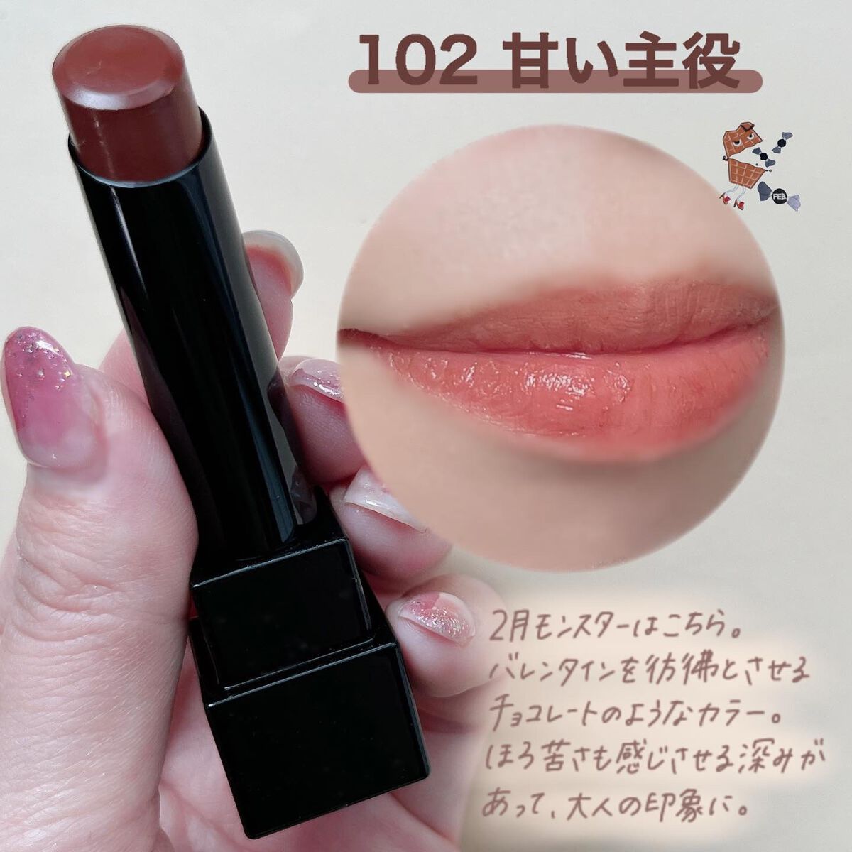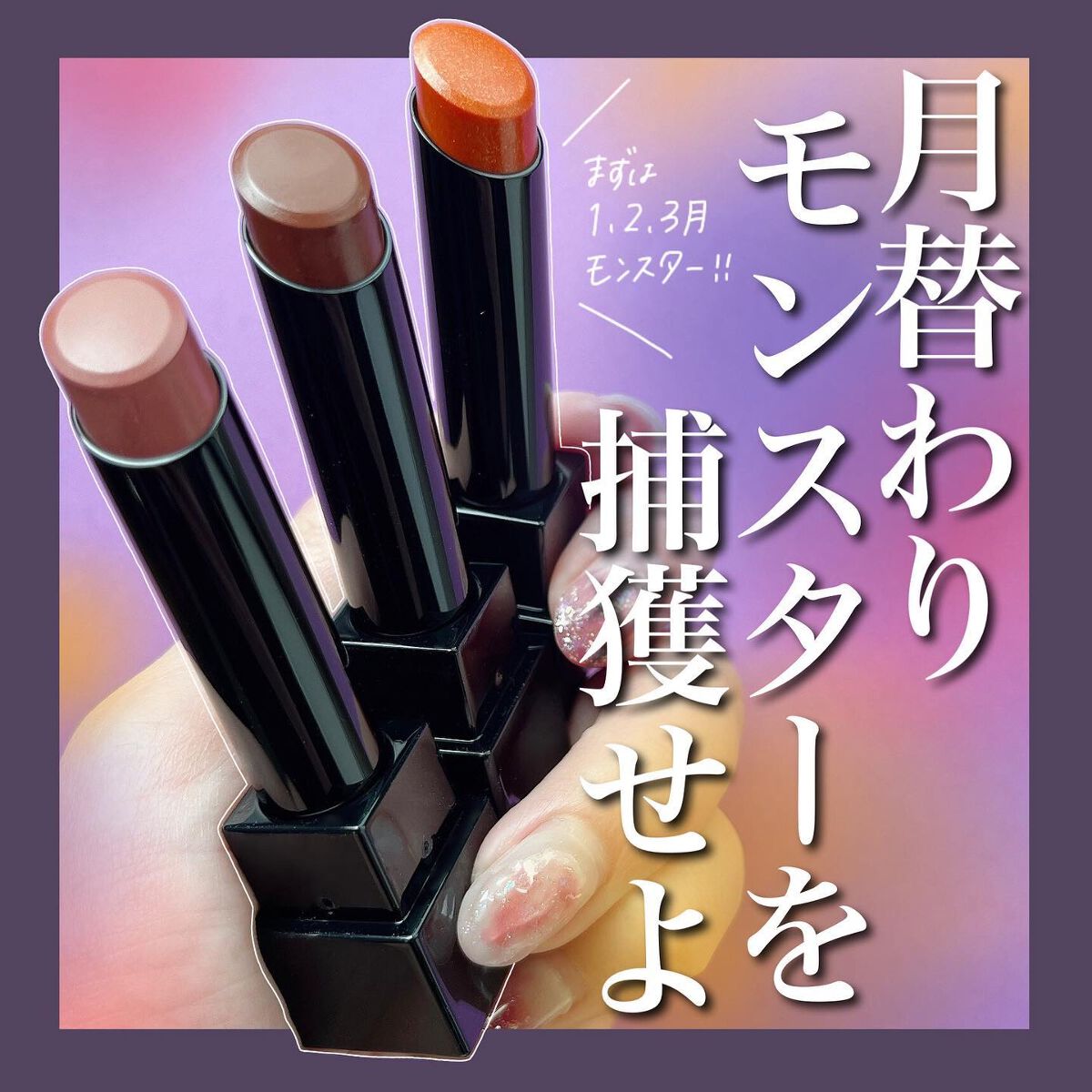 - 落ちにくさも美発色もよくばりたい、つけたての色が長時間持続する人気の口紅リップモンスター。 唇から蒸発する水分を活用して密着ジェル膜に変化する独自技術※で、つけたての色が長時間持続。 高発色&保湿。 ※当社独自の色持ち技術 ■花火のようにまぶしくきらめく 繊細なラメが際立つ限定色 EX-6 ピンクカラー×青ラメ【ロケット花火流星群】 EX-7 オレンジカラー×黄&緑ラメ【100万発の線香花火】 EX-8 レッドカラー×緑ラメ【打ち上げ花火ブランコ】 ■深みレッド系カラーの限定色 EX-9 戦慄の喜笑 (限定色) EX-10 狂気の怒号 (限定色) 【2025クリスマスコフレ】 落ちにくいリップモンスターから、唇の血色感を底上げする ホリデーシーズン限定の熱感ニュアンスベージュ系カラー登場。 EX-11 紅煙宿る贈り物(限定色):ボルドーベージュ系 EX-12 盗まれた1224mの星光(限定色):キャメルベージュ系