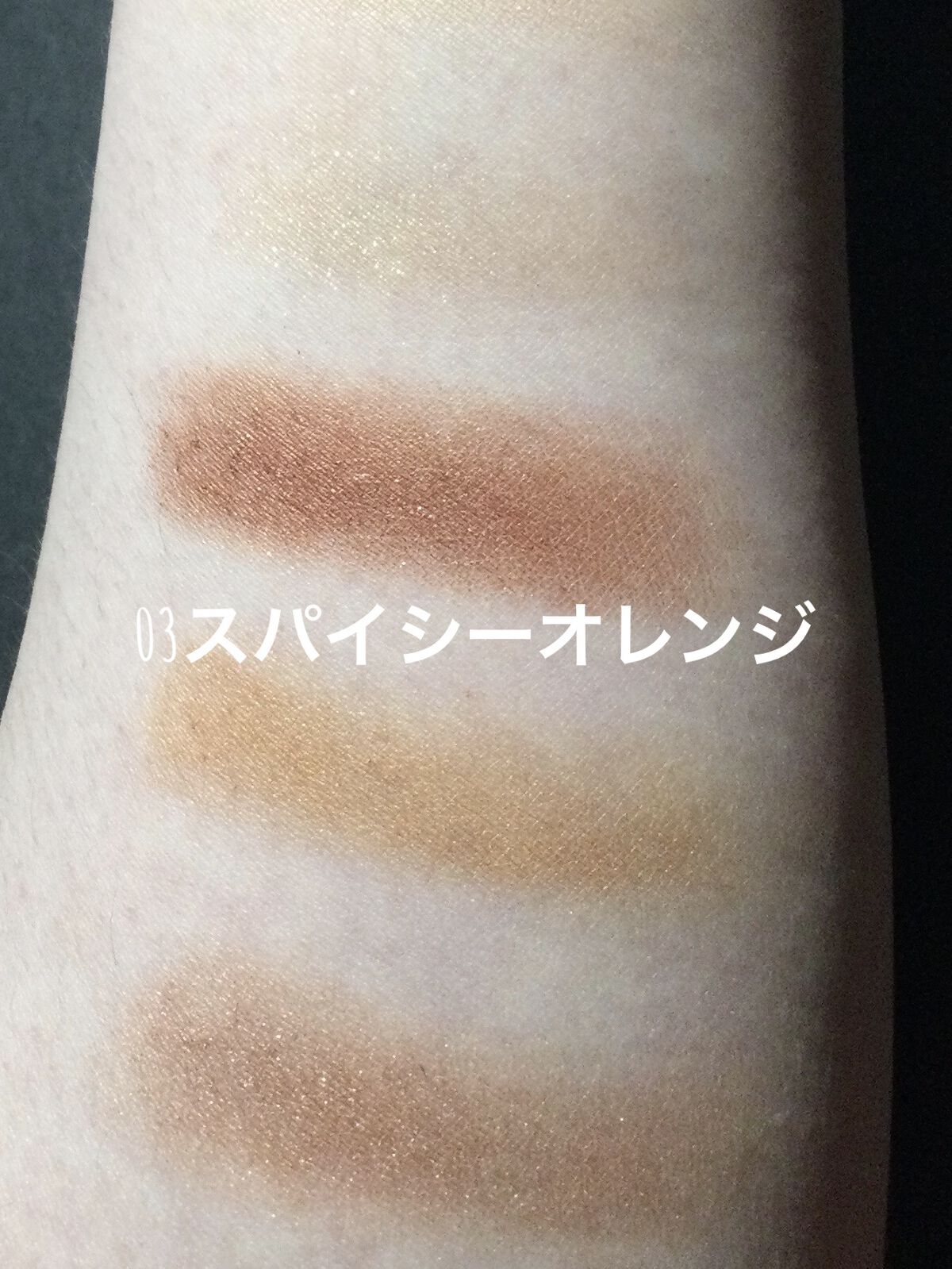 - <01 ストロベリーショコラ> ジメチコン、タルク、(ジメチコン/ビニルジメチコン)クロスポリマー、トリ(カプリル酸/カプリン酸)グリセリル、カルナウバロウ、クロルフェネシン、デヒドロ酢酸Na、ラウロイルリシン、トコフェロール、シリカ、ホウケイ酸(Ca/Al)、マイカ、酸化チタン、酸化鉄、酸化スズ、リンゴ酸ジイソステアリル、ジエチルヘキサン酸ネオペンチルグリコール、ヘキサ(ヒドロキシステアリン酸/ステアリン酸/ロジン酸)ジペンタエリスリチル、セスキイソステアリン酸ソルビタン、ミリスチン酸亜鉛、硫酸Ba、(+/ー)シリカ、グンジョウ、赤226、赤202、コンジョウ、水酸化Al <02 スモーキーブルー> ジメチコン、タルク、(ジメチコン/ビニルジメチコン)クロスポリマー、トリ(カプリル酸/カプリン酸)グリセリル、カルナウバロウ、クロルフェネシン、デヒドロ酢酸Na、ラウロイルリシン、トコフェロール、シリカ、ホウケイ酸(Ca/Al)、マイカ、酸化チタン、酸化鉄、酸化スズ、リンゴ酸ジイソステアリル、ジエチルヘキサン酸ネオペンチルグリコール、ヘキサ(ヒドロキシステアリン酸/ステアリン酸/ロジン酸)ジペンタエリスリチル、セスキイソステアリン酸ソルビタン、ミリスチン酸亜鉛、硫酸Ba、(+/ー)シリカ、グンジョウ、赤226、赤202、コンジョウ、水酸化Al <03 スパイシーオレンジ> ジメチコン、タルク、トリ(カプリル酸/カプリン酸)グリセリル、(ジメチコン/ビニルジメチコン)クロスポリマー、カルナウバロウ、クロルフェネシン、デヒドロ酢酸Na、ラウロイルリシン、トコフェロール、シリカ、マイカ、ホウケイ酸(Ca/Al)、酸化チタン、酸化鉄、酸化スズ、リンゴ酸ジイソステアリル、ジエチルヘキサン酸ネオペンチルグリコール、ヘキサ(ヒドロキシステアリン酸/ステアリン酸/ロジン酸)ジペンタエリスリチル、セスキイソステアリン酸ソルビタン、ミリスチン酸亜鉛、水酸化Al、硫酸Ba、グンジョウ <04 ダズルベージュ> ジメチコン、タルク、トリ(カプリル酸/カプリン酸)グリセリル、(ジメチコン/ビニルジメチコン)クロスポリマー、カルナウバロウ、クロルフェネシン、デヒドロ酢酸Na、ラウロイルリシン、トコフェロール、マイカ、酸化チタン、ホウケイ酸(Ca/Al)、酸化鉄、酸化スズ、リンゴ酸ジイソステアリル、ジエチルヘキサン酸ネオペンチルグリコール、シリカ、ヘキサ(ヒドロキシステアリン酸/ステアリン酸/ロジン酸)ジペンタエリスリチル、セスキイソステアリン酸ソルビタン、ミリスチン酸亜鉛、硫酸Ba、水酸化Al <05 ヌーディピーチ> トリ(カプリル酸/カプリン酸)グリセリル、タルク、ダイマージリノール酸ジ(イソステアリル/フィトステリル)、カルナウバロウ、シリカ、ダイマージリノール酸ダイマージリノレイルビス(ベヘニル/イソステアリル/フィトステリル)、トコフェロール、マイカ、ホウケイ酸(Ca/Al)、酸化チタン、酸化鉄、グンジョウ、酸化スズ、合成フルオロフロゴパイト、ジフェニルシロキシフェニルトリメチコン、水添ポリデセン、アルミナ、(イソステアリン酸ポリグリセリル-2/ダイマージリノール酸)コポリマー、ジメチコン、ジステアリン酸Al、ステアリン酸Mg、水酸化Al、硫酸Ba、赤226、リンゴ酸ジイソステアリル、ジエチルヘキサン酸ネオペンチルグリコール、ヘキサ(ヒドロキシステアリン酸/ステアリン酸/ロジン酸)ジペンタエリスリチル、ミリスチン酸亜鉛、クロルフェネシン、デヒドロ酢酸Na、セスキイソステアリン酸ソルビタン <06 クレールカーキ> トリ(カプリル酸/カプリン酸)グリセリル、タルク、ダイマージリノール酸ジ(イソステアリル/フィトステリル)、カルナウバロウ、シリカ、ダイマージリノール酸ダイマージリノレイルビス(ベヘニル/イソステアリル/フィトステリル)、トコフェロール、水酸化Al、マイカ、ホウケイ酸(Ca/Al)、酸化チタン、酸化鉄、酸化スズ、合成フルオロフロゴパイト、ジフェニルシロキシフェニルトリメチコン、水添ポリデセン、アルミナ、(イソステアリン酸ポリグリセリル-2/ダイマージリノール酸)コポリマー、ジメチコン、ジステアリン酸Al、ステアリン酸Mg、硫酸Ba、グンジョウ <07 サイレントベージュ> トリ(カプリル酸/カプリン酸)グリセリル、タルク、ダイマージリノール酸ジ(イソステアリル/フィトステリル)、シリカ、カルナウバロウ、ダイマージリノール酸ダイマージリノレイルビス(ベヘニル/イソステアリル/フィトステリル)、トコフェロール、水酸化Al、マイカ、酸化チタン、ホウケイ酸(Ca/Al)、酸化鉄、酸化スズ合成フルオロフロゴパイト、ジフェニルシロキシフェニルトリメチコン、水添ポリデセン、アルミナ、(イソステアリン酸ポリグリセリル-2/ダイマージリノール酸)コポリマー、ジメチコン、硫酸Ba、ジステアリン酸Al、ステアリン酸Mg、酸化チタン合成フルオロフロゴパイト、酸化スズタルク、リンゴ酸ジイソステアリル、ジエチルヘキサン酸ネオペンチルグリコール、ヘキサ(ヒドロキシステアリン酸/ステアリン酸/ロジン酸)ジペン