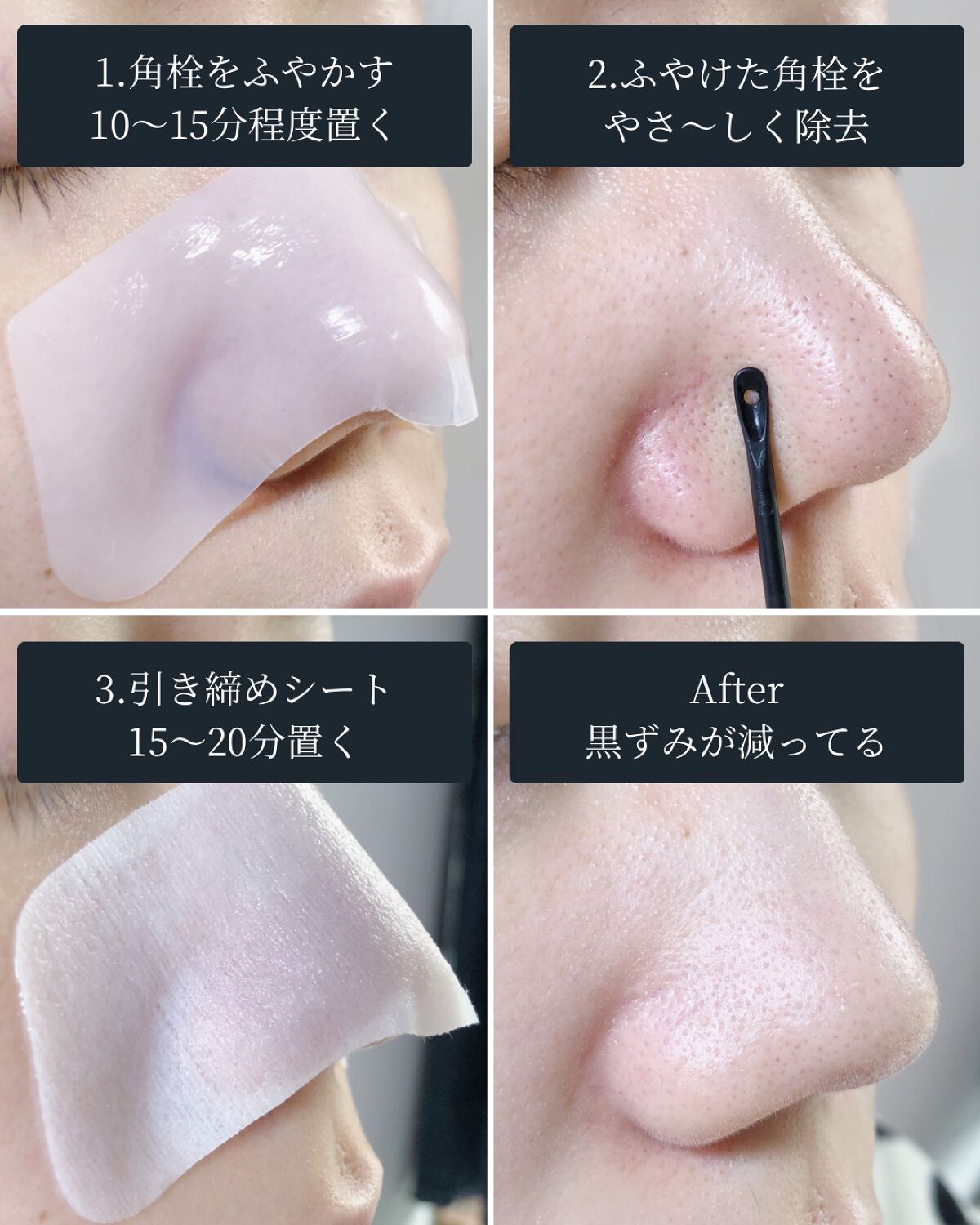 - 1-2STEPで毛穴の汚れを取り除き-肌引き締めて終わり! STEP 1こだわりの独自成分とシート素材で肌に優しい使い心地で皮脂、黒ずみ汚れを除去 STEP-2で 肌引き締め、肌を整える お鼻の黒ずみ汚れのお悩み、まろやかに一気に除去!