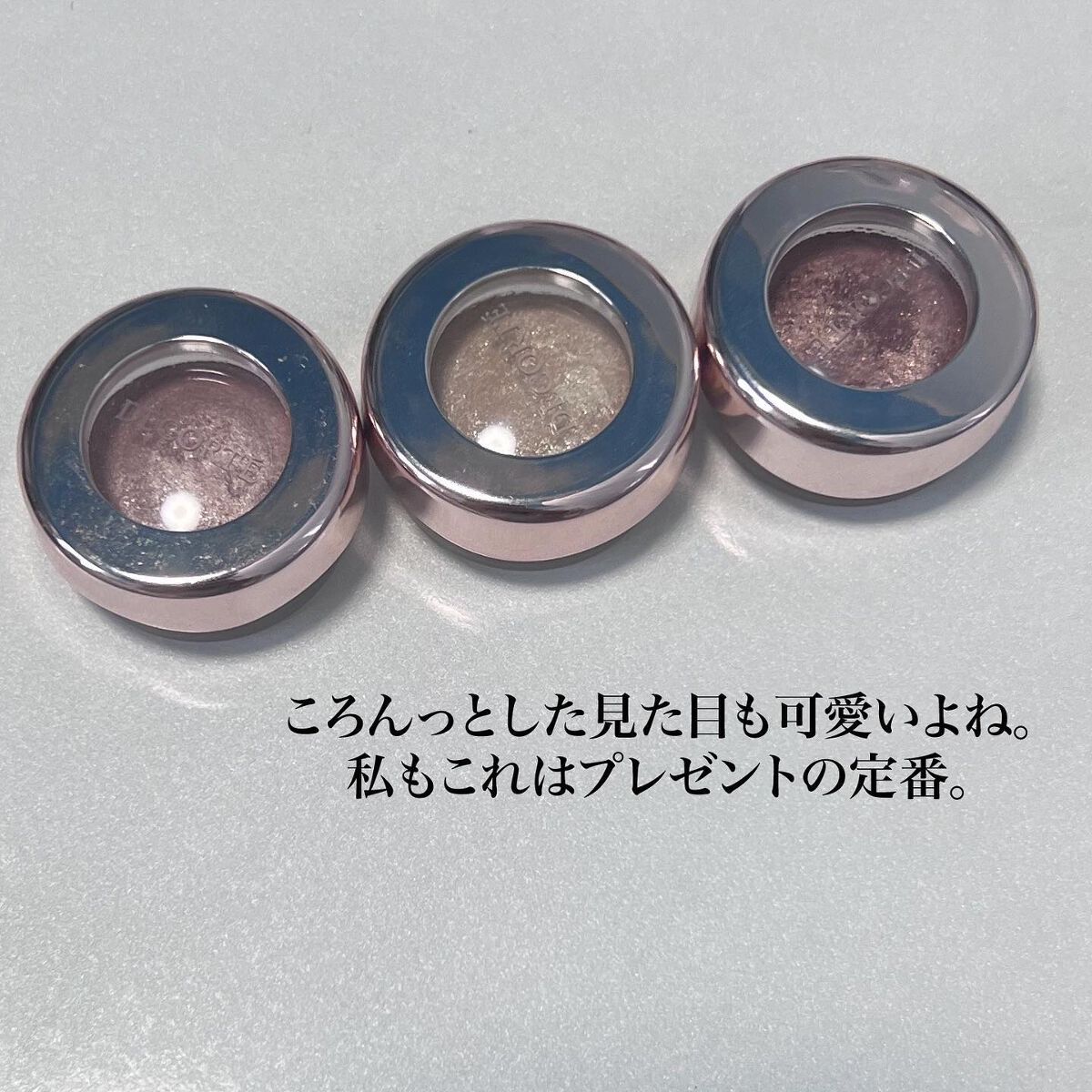 ボビイブラウンの名品ムーンストーンはベースがクリアなのでどんなアイシャドウにも合わせられるし上からトッピングするのにも向いています。 アディクションのマリアージュは2,200円でこの煌めき! 一番安いのに一番輝く、さすがです。 秋蛍は実はトッピングするとベースのシャドウを殺してしまうので目頭、下瞼などポイント使いかベースに使うのがおすすめです。