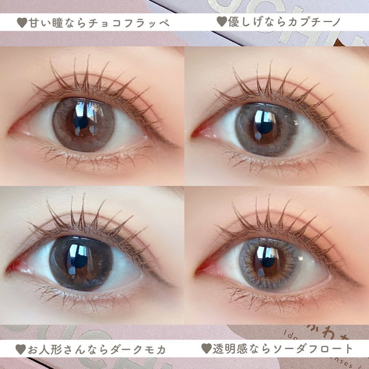 キャンマジ新色出たよ💕 馴染む立体感がヨジャドルっぽくて新色の中で1番よく使ってるカラー。 どんなメイクとも相性がいいので使いやすいです! 着色直径よりも体感大きめに感じるのも🙆🏻♀️ オレンジ感の少ないブラウンだから口紅やチーク次第で幼くも大人っぽくもなれる。 浮かない太めフチで可愛いさ溢れてます✨ レンズ単体だとめちゃくちゃピンクなのかなと思ったけど着けたら馴染みました💕 パキッとしないのでほわほわしたピンクが好きな人やラメメイクが好きな人にもおすすめ◎