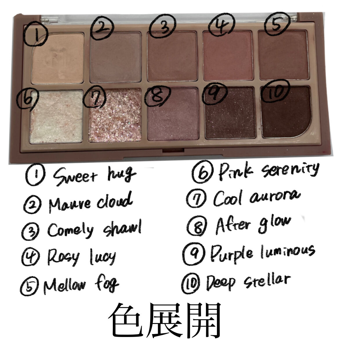 - 10color & 5texteresで、多機能に使用できるアイシャドウパレットです。 陰影ベースからパール感のあるポイントメイクまで、滑らかな塗り心地と高い密着力で美しいグラデーションを作ることができます。 しっとりとした目元を演出しつつ煌めきも与え自分だけのmoodを演出してくれます。