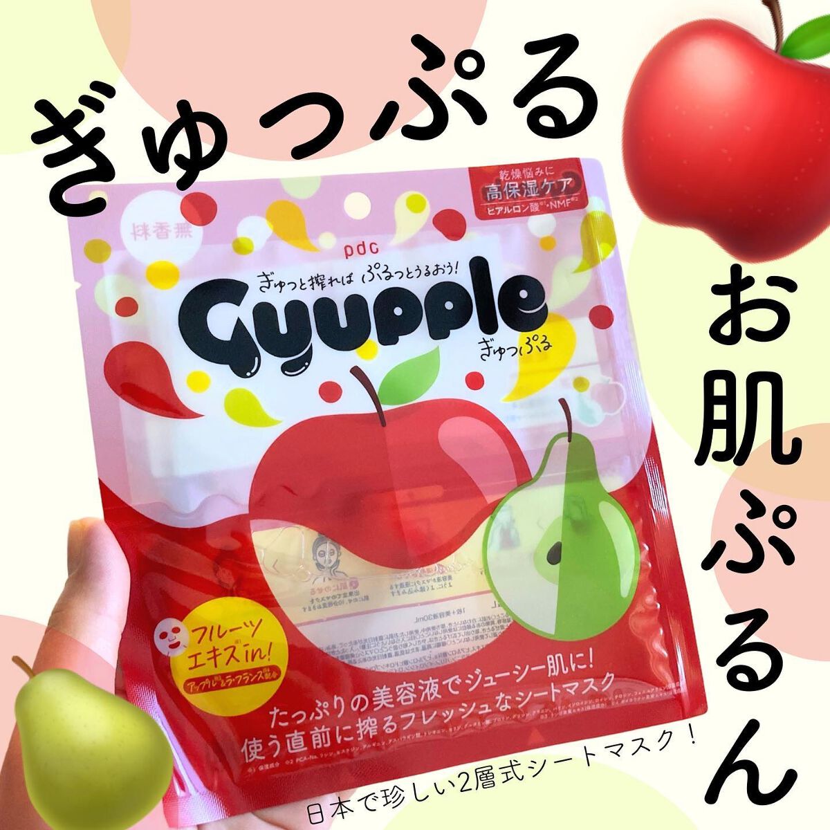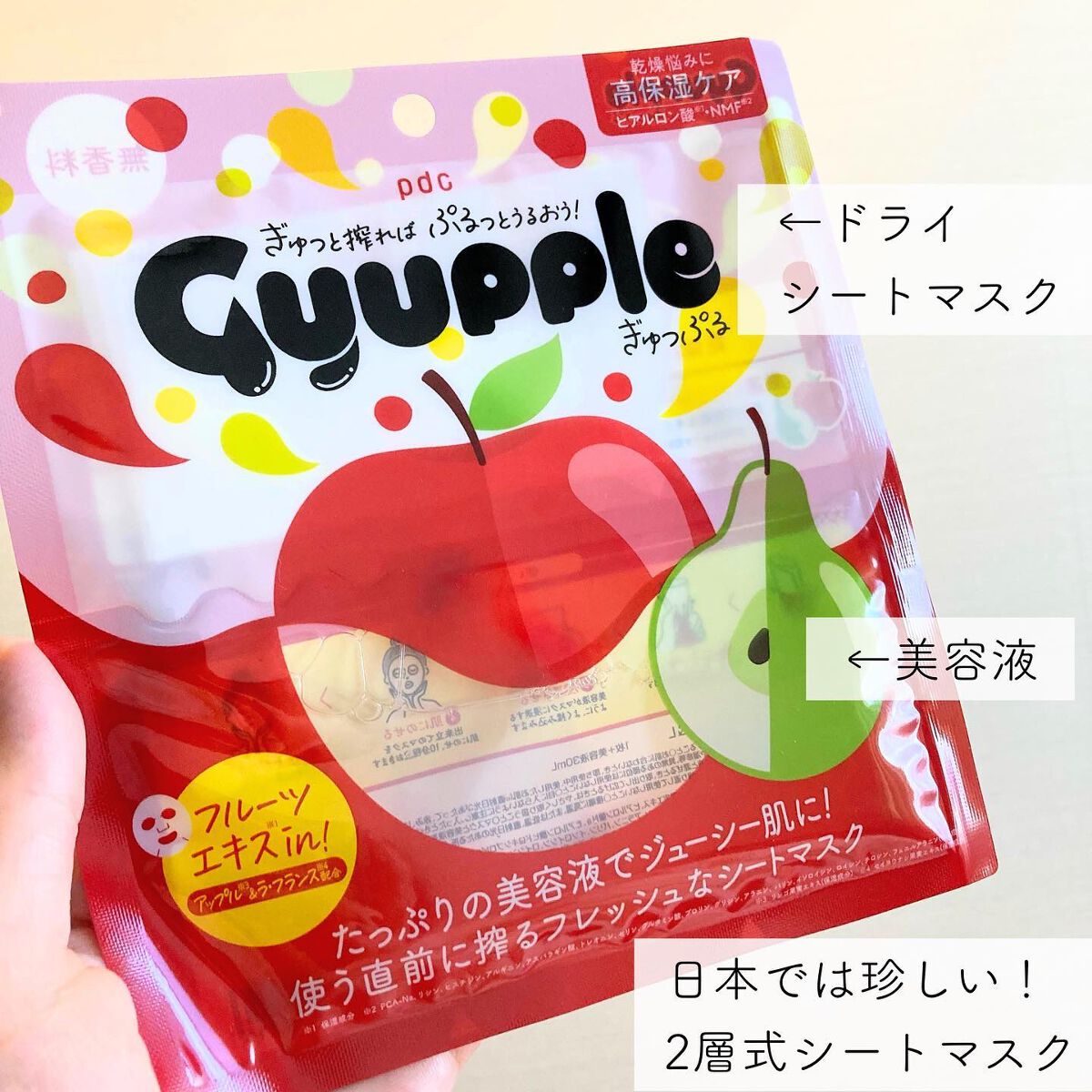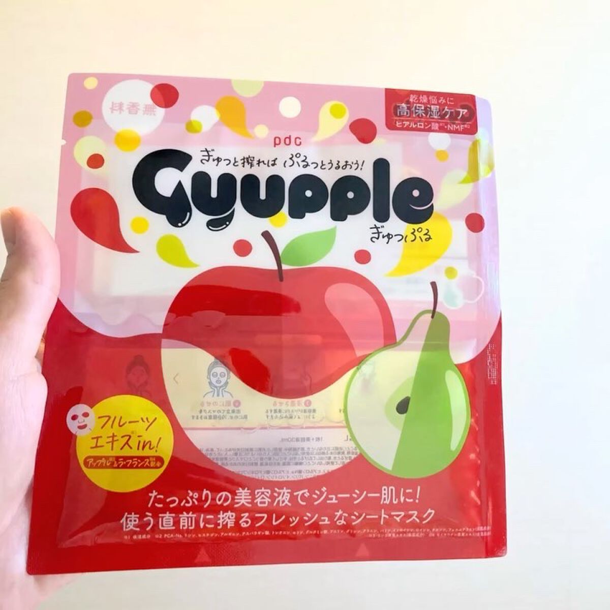 🍎pdcぎゅっぷるエッセンスマスク🍎\ぎゅっと搾れば、ぷるっとうるおう!/1枚30mL/396円(税込価格)美容液1本分の贅沢マスク‼️美容液とドライシートマスクが分離されてて使う直前に搾るフレッシュなパック🥺三つ折にして下の美容液部分を...