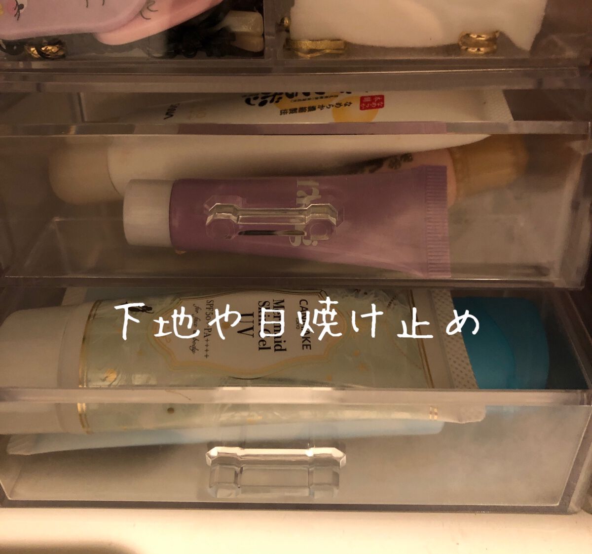 透明アクリルケースを使って見せる収納をしています💡 今までDAISOのケースを使っていたのですが、引っかかりやすくて私には合わなかったので無印のケースを愛用しています! 一番のお気に入りは香水コーナーです♥SHEINで買ったトレーにM・A・Cのリボンを使って可愛くカスタムしました✨ 重たいものを上段に乗せるとガタガタしてしまうので、下段に重みがあるものを乗せるとバランスよく使えます🙆♀️