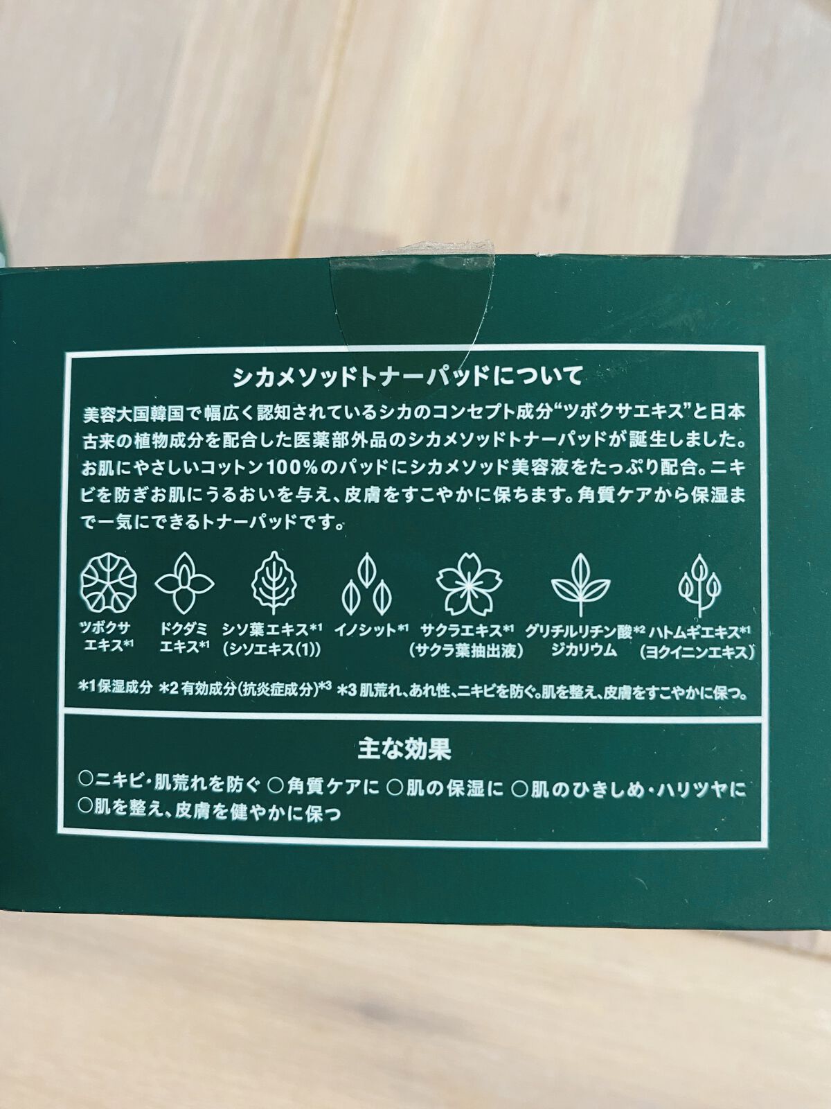 - シカメソッド処方の薬用トナーパッド抗炎症・ニキビを防ぐ効果のあるツボクサエキス・ドクダミエキス等の美容液をたっぷり染み込ませました。 (有効成分:グリチルリチン酸ジカリウム) ①ニキビ(を防ぐ) ②角質ケア ③肌荒れ(を防ぐ) ④保湿 ⑤ハリツヤ 効果がある5in1のマルチパッドでこれ1枚で肌を整え時短スキンケアが叶います。