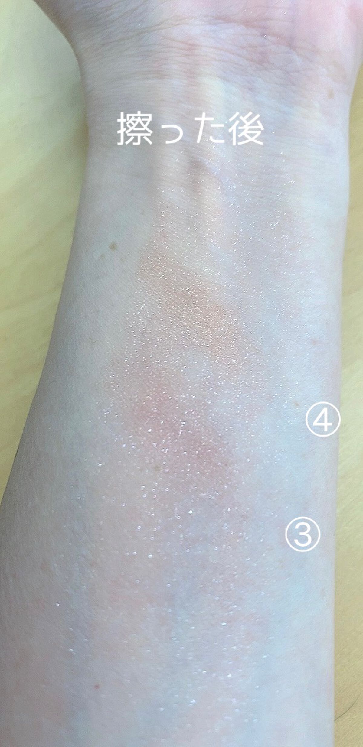発色良いので単品使いでも良さそう。擦れにラメ飛びするので、アイシャドウベース必要かも、ですね。下瞼にのせて自然に盛れた‼️ラメが大きすぎないので使いやすそう。#はじめての投稿...