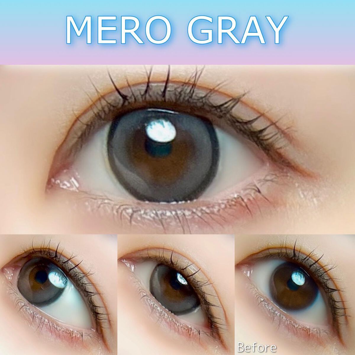 個性的なカラーからナチュラルなものまで幅広いラインナップで見てて楽しかったです! 透明感のあるブルーグレーが瞳に溶け込み、リアルなグレーアイに見せるレンズ。 透け感のある色味だけどしっかり発色するナチュラルハーフ系カラコン。着色直径も小さめなので着せ替え感があってかわいい。 N's COLLECTIONはレンズのつけ心地もすごく良くて他のカラーもとっても可愛いです!